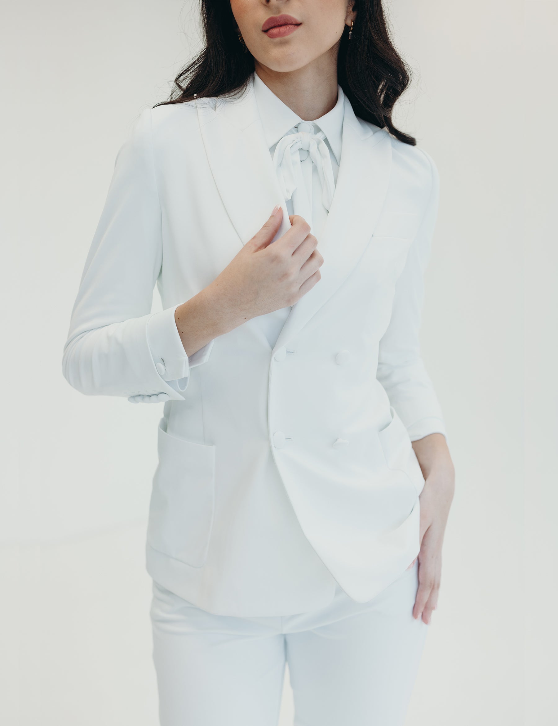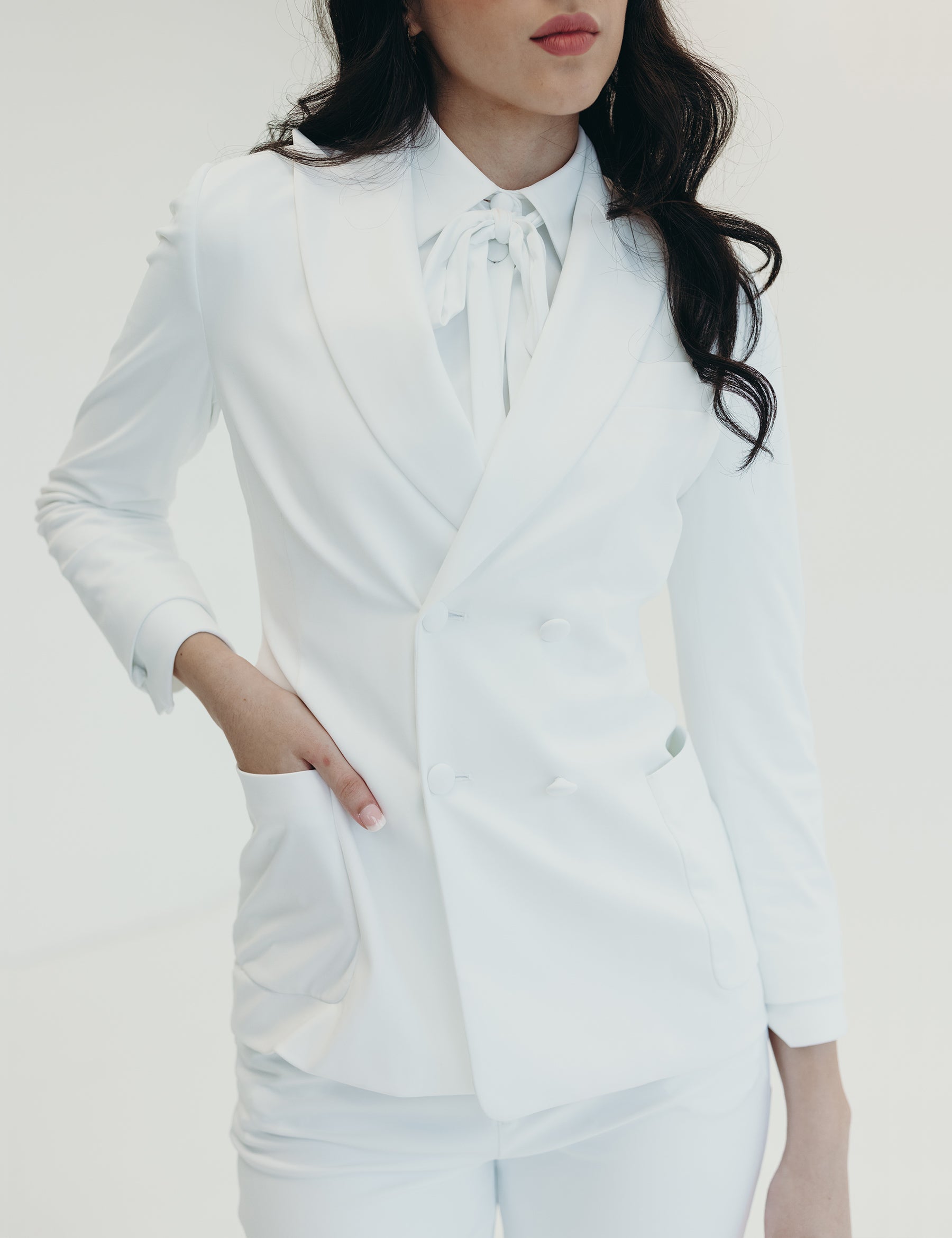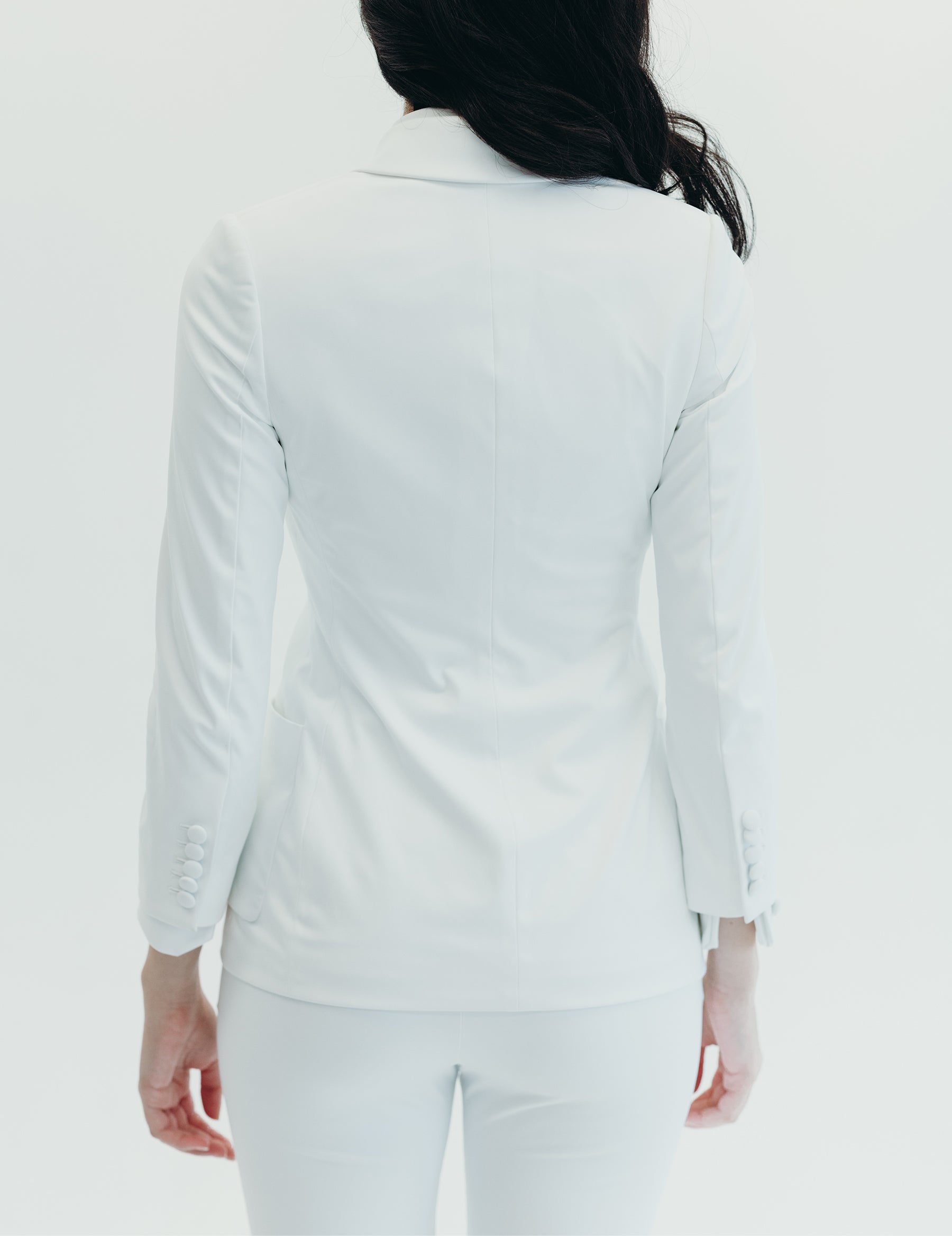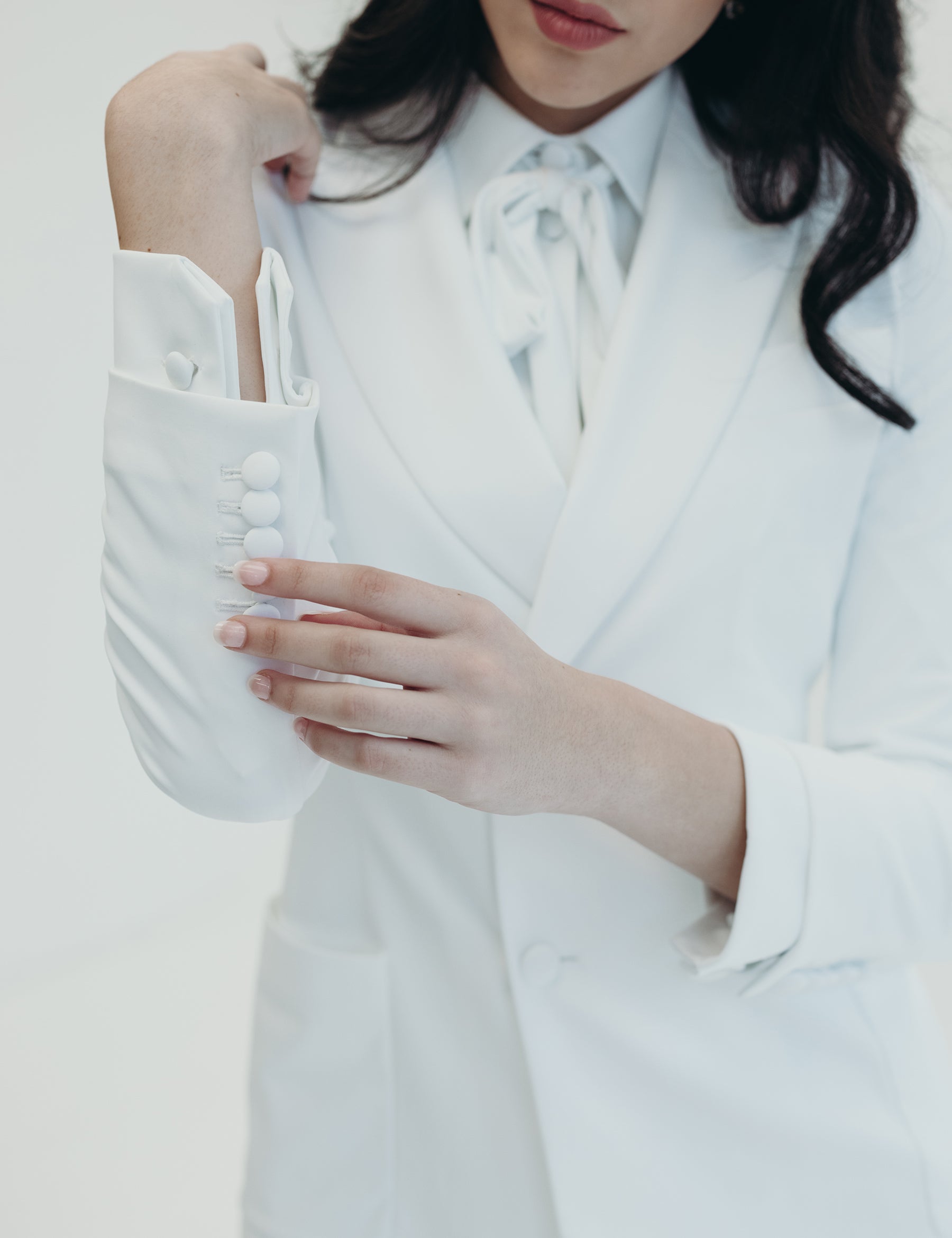 Oversized, loosely fitted through the arms and body with a button to give a more tailored look. The lustrous fabric stretches and hugs the body without giving any feelings of constriction.