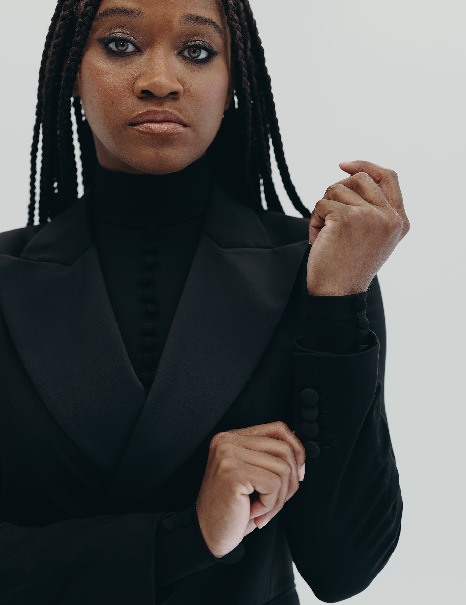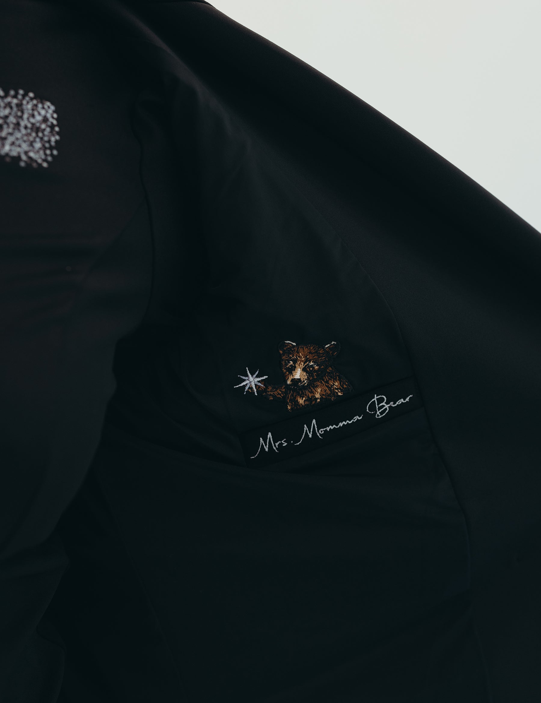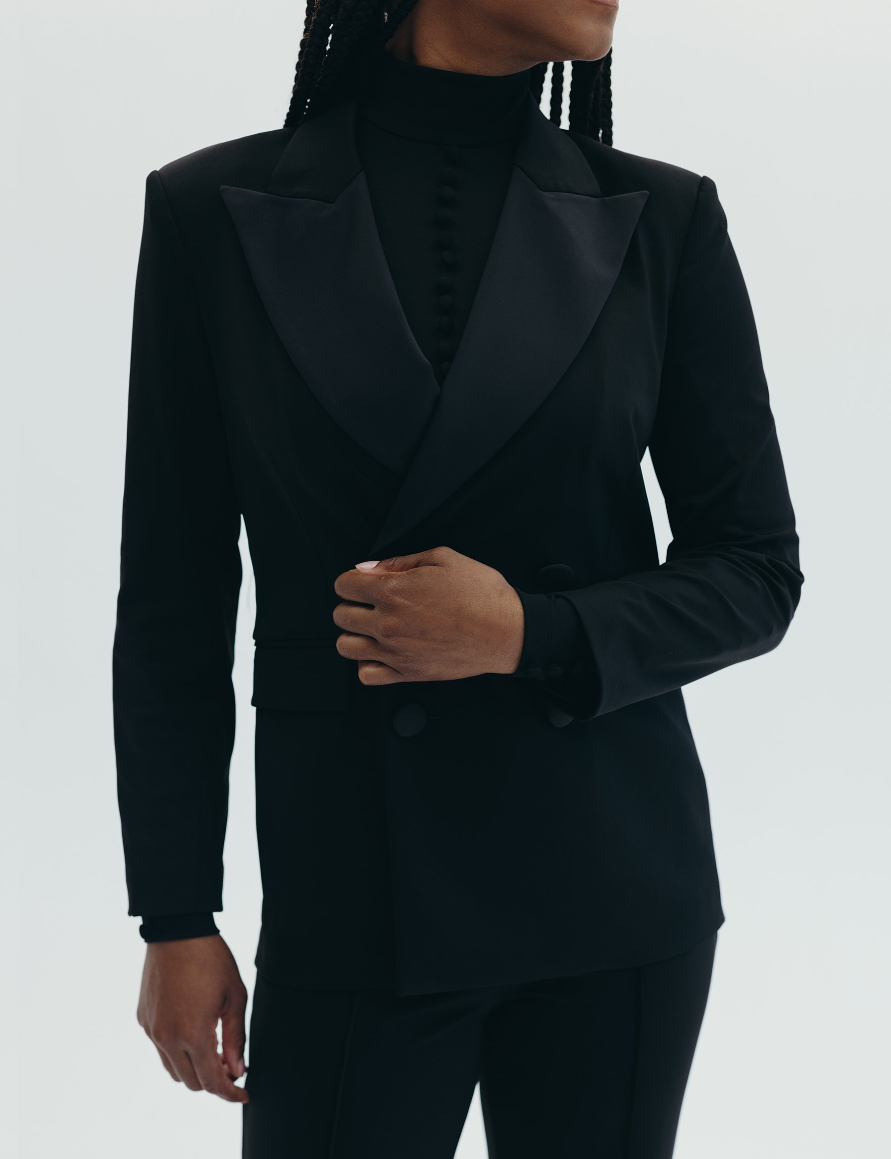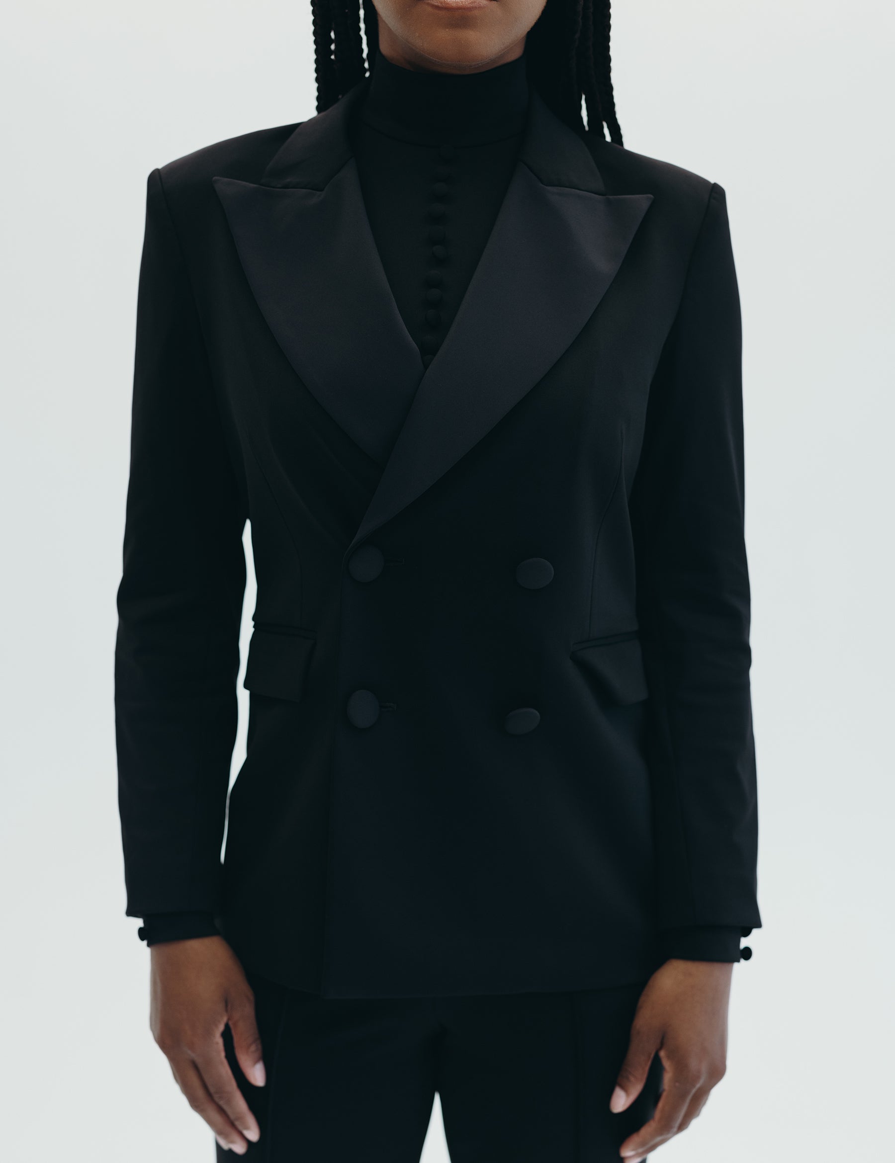 'Starry Night’ is perfect for those times when a fierce all black ensemble is required. This chic, oversized tuxedo jacket adds a touch of glamor, and made with lustrous fabric, and comfort is not compromised.