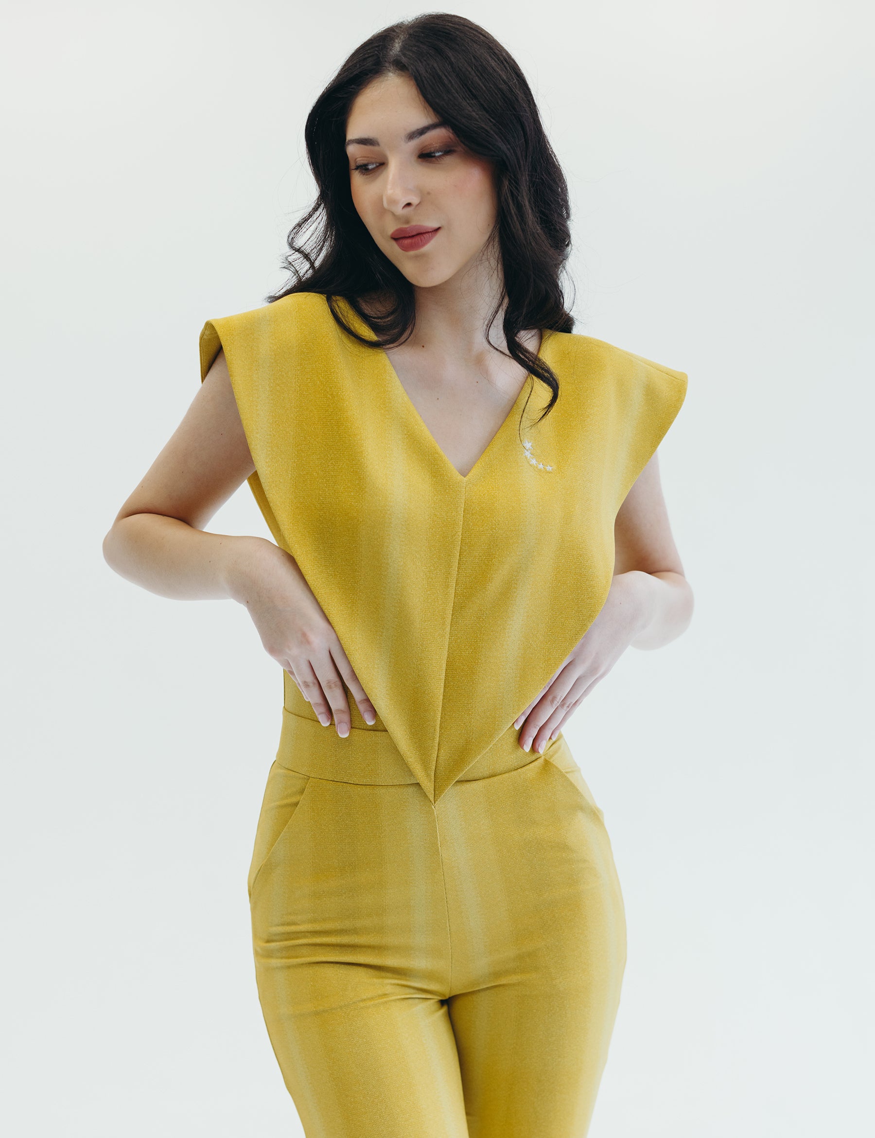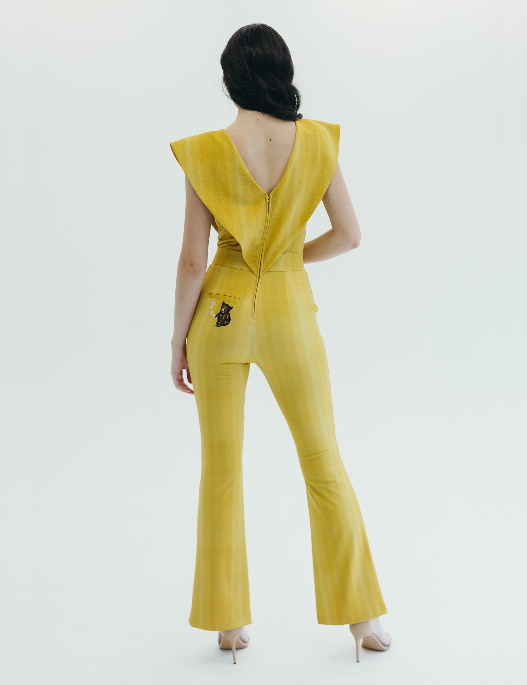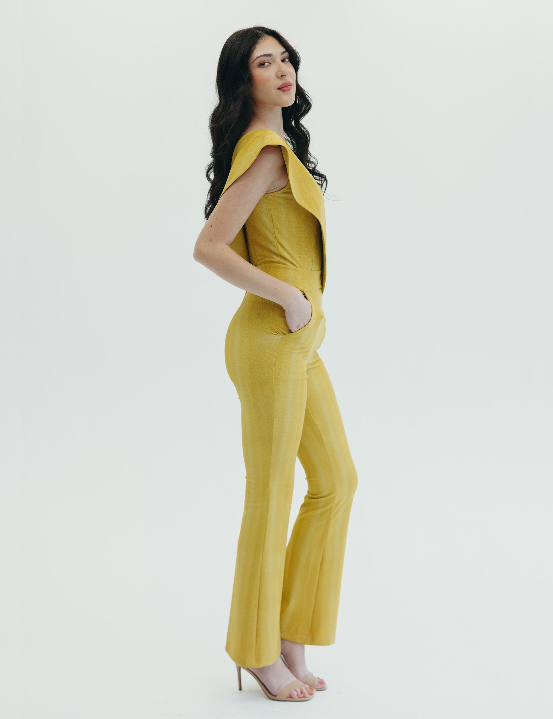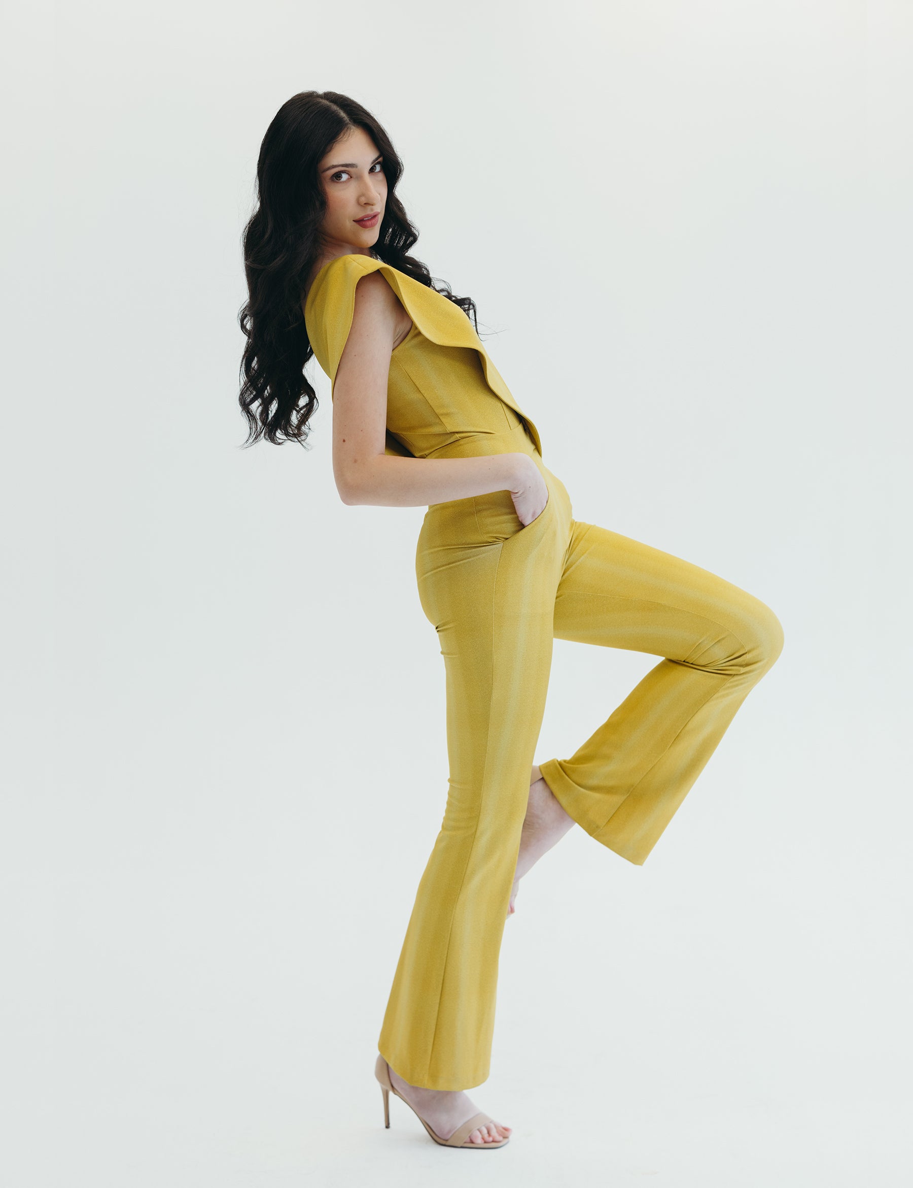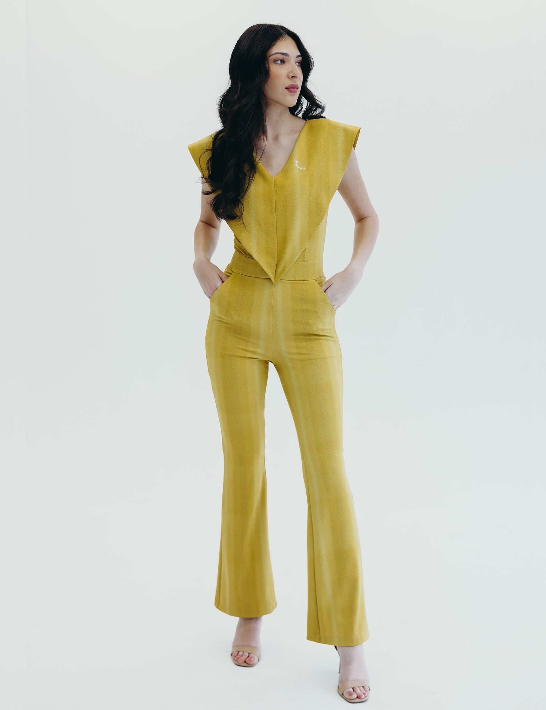 If you’re looking to boost your confidence and feel like your true superstar self, look no further. This one-piece gold jumpsuit, complete with an alluring V-neck and an illusion of lamé detail, is perfect for any occasion. Its simplicity and elegance highlight your best features, making you feel and look like the superstar momma that you are.