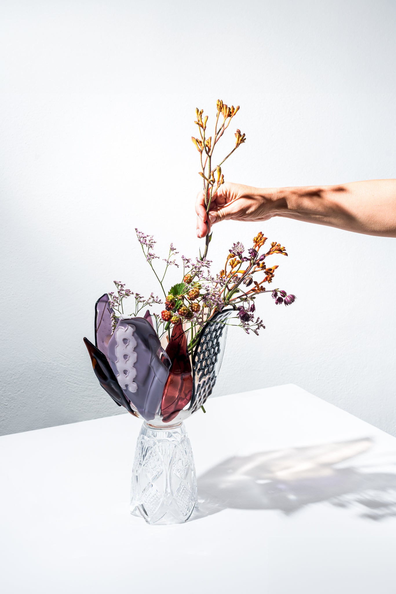 Made from recycled crystal and glass waste from HYTI studio. Each piece is unique and created with a minimal environmental footprint, giving new life to discarded materials.