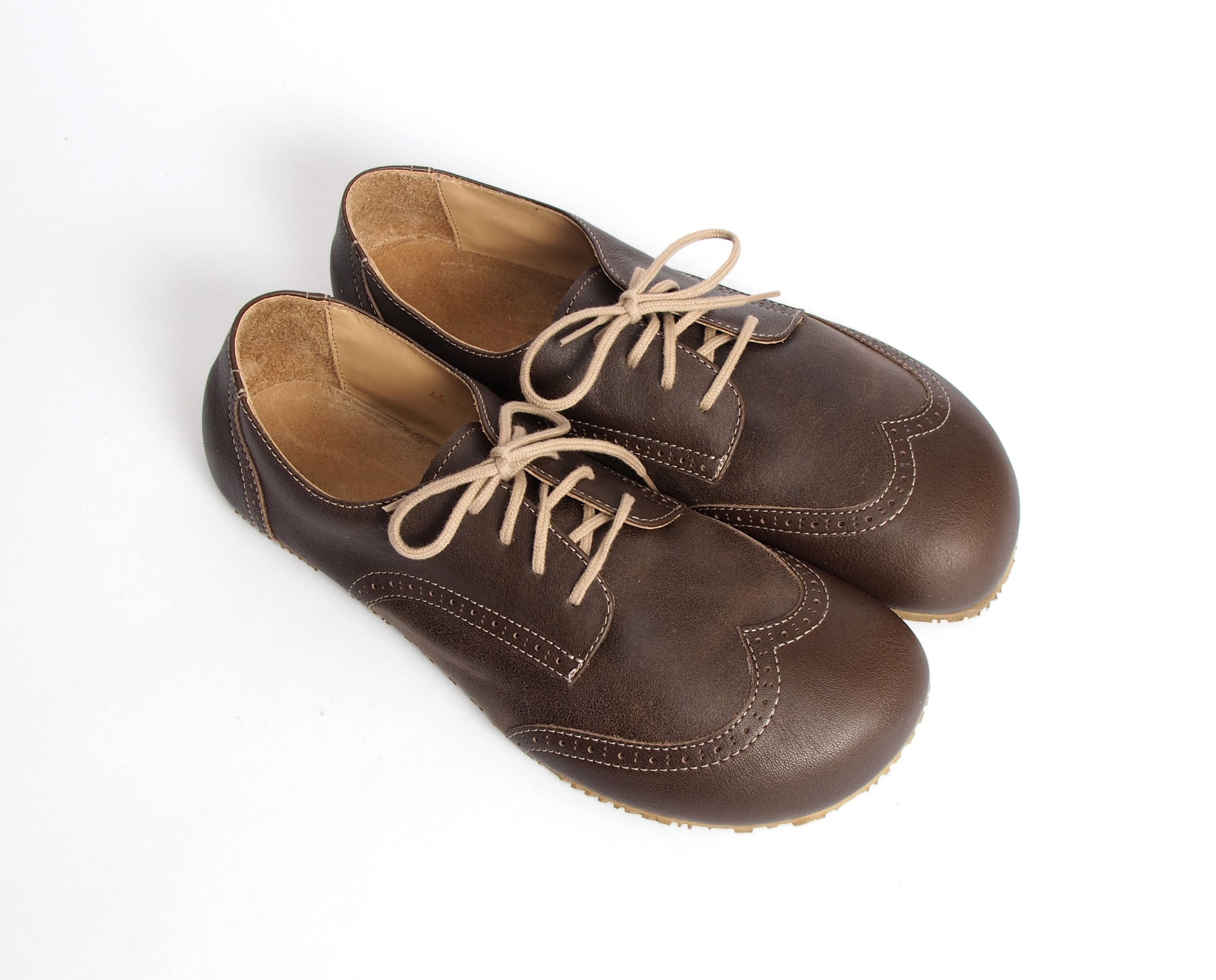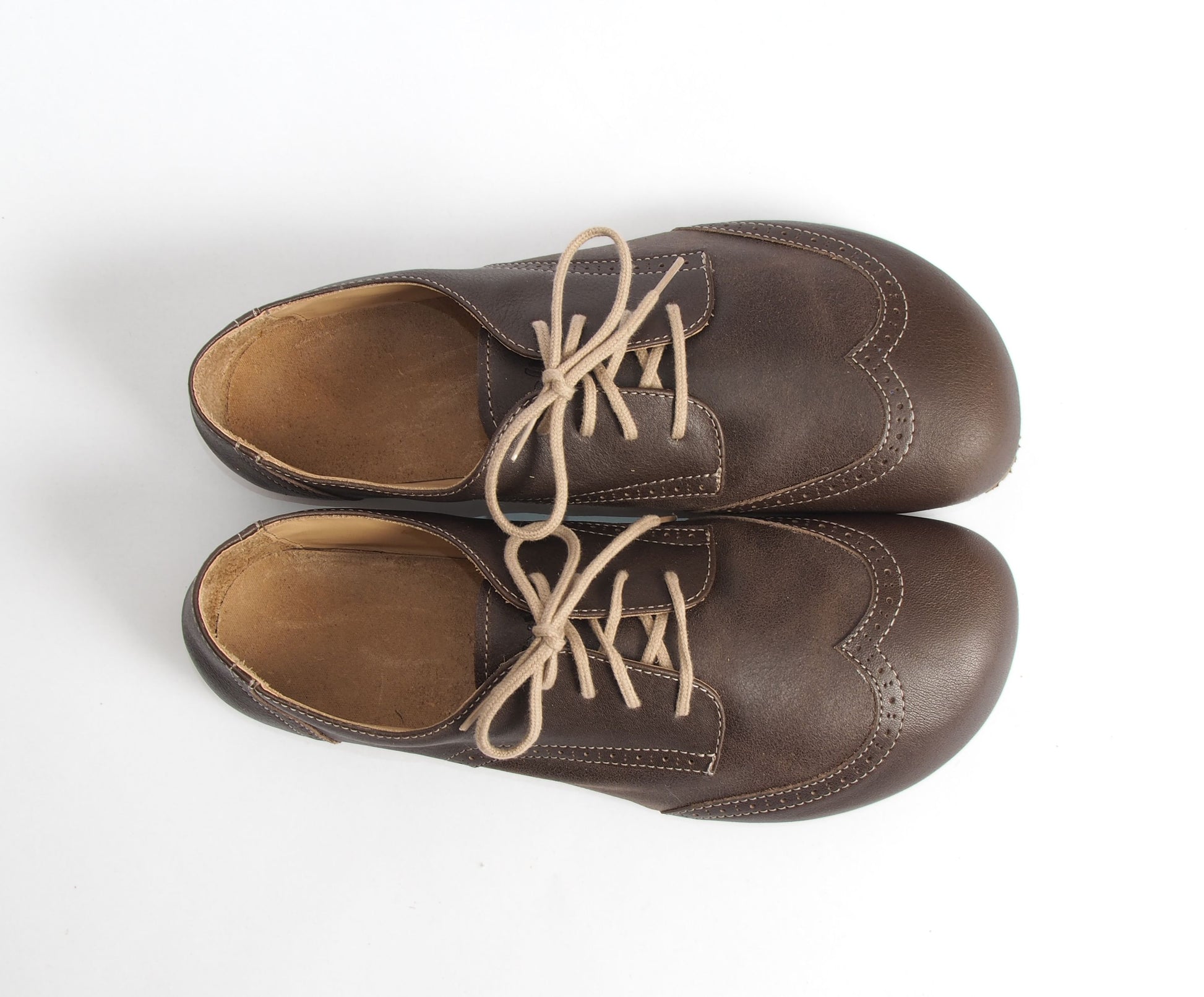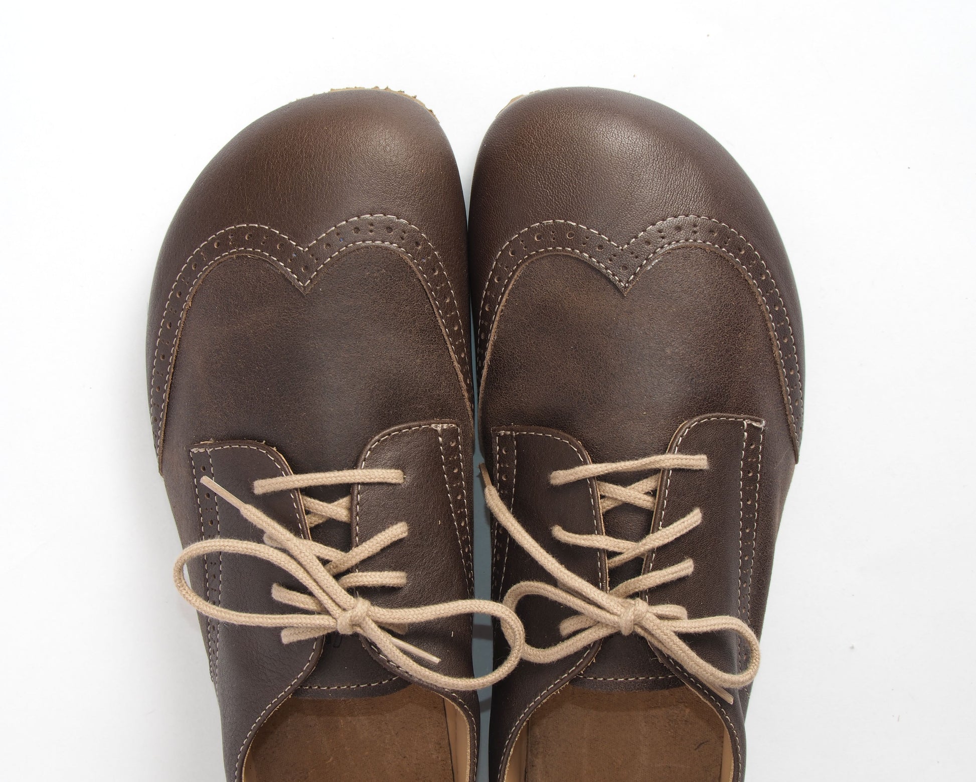 Crafted from two types of chocolate brown leather—smooth for the toe, heel, and side pieces; waxed suede for the vamp and tongue. Features brogue detailing, hidden eyelets, and full leather lining. Cotton laces are custom-made locally. Built on No(N)s original last with a wide toe box and narrow heel for a natural fit. Set on a leather pinsole (construction sole) and a 5 mm Vibram outer sole that leaves no streaks, offering flexibility and ground feel. Fully repairable and re-soleable for extended wear. All materials are sourced from sustainable tanneries and producers.