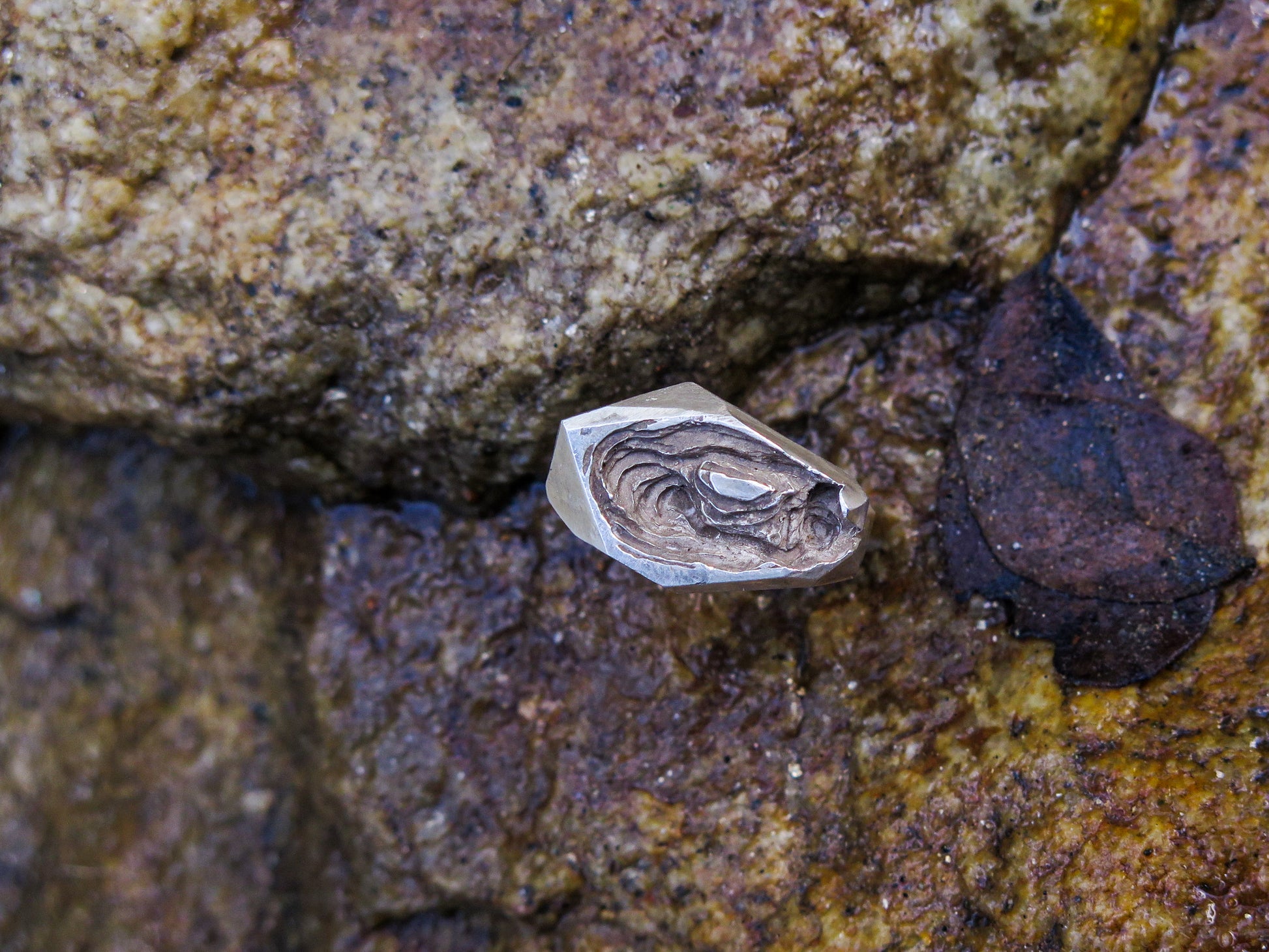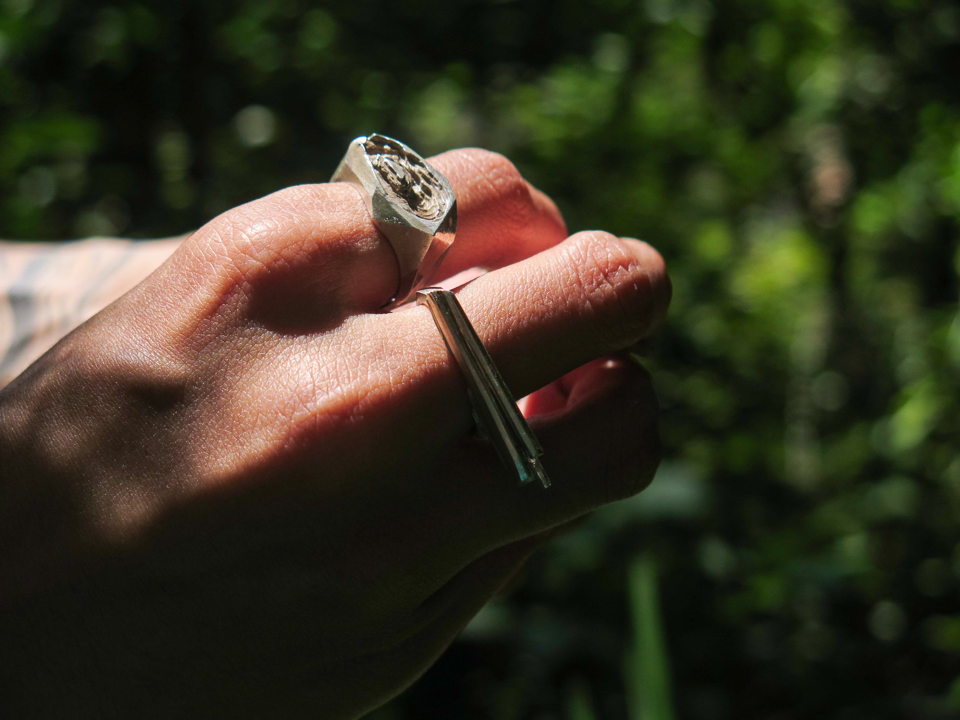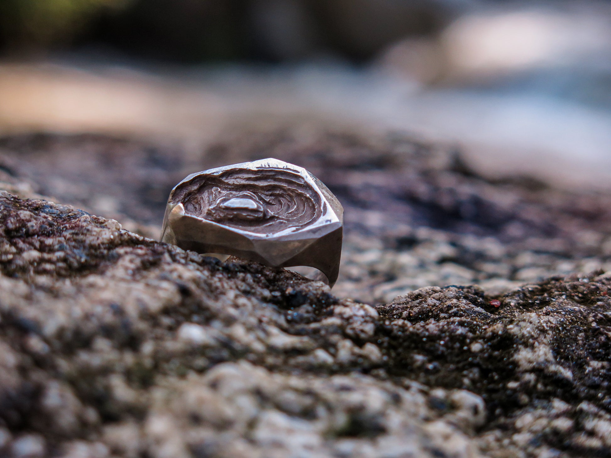 Ring in recycled silver. Law 9.50. Technique: Lost wax. Sizes: 4, 5, 6, 7, 8. With mold.