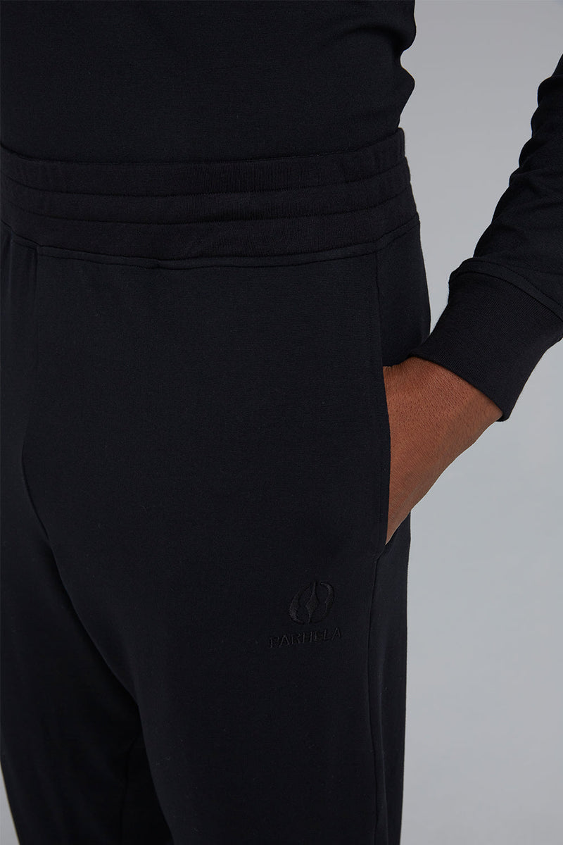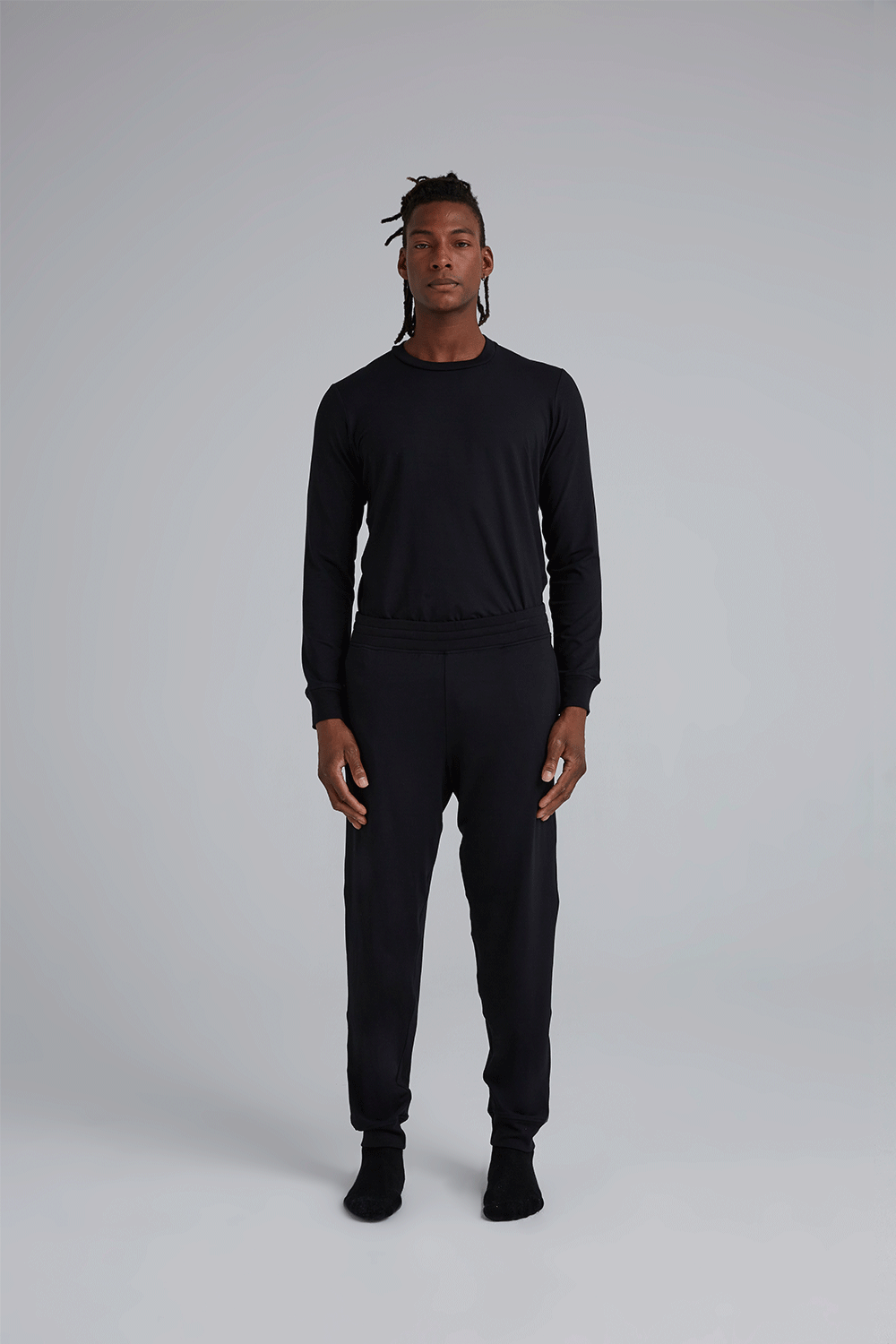 Our inspiration for this garment stemmed from the idea of a luxury aeroplane travel outfit. Made from recycled tree fibres, which are spun into a yarn, Modal feels like a mixture between silk and spandex. The only Non-Italian fabric within the collection, and for good reason; The Portuguese are at the forefront of modal knitting, and this particular fabric is the finest available. Hard wearing, yet super soft and perfectly weighted. Ideal to be worn with the matching top when travelling, as pyjamas at home, or even as an outdoor clean-cut tracksuit for the warmer months..