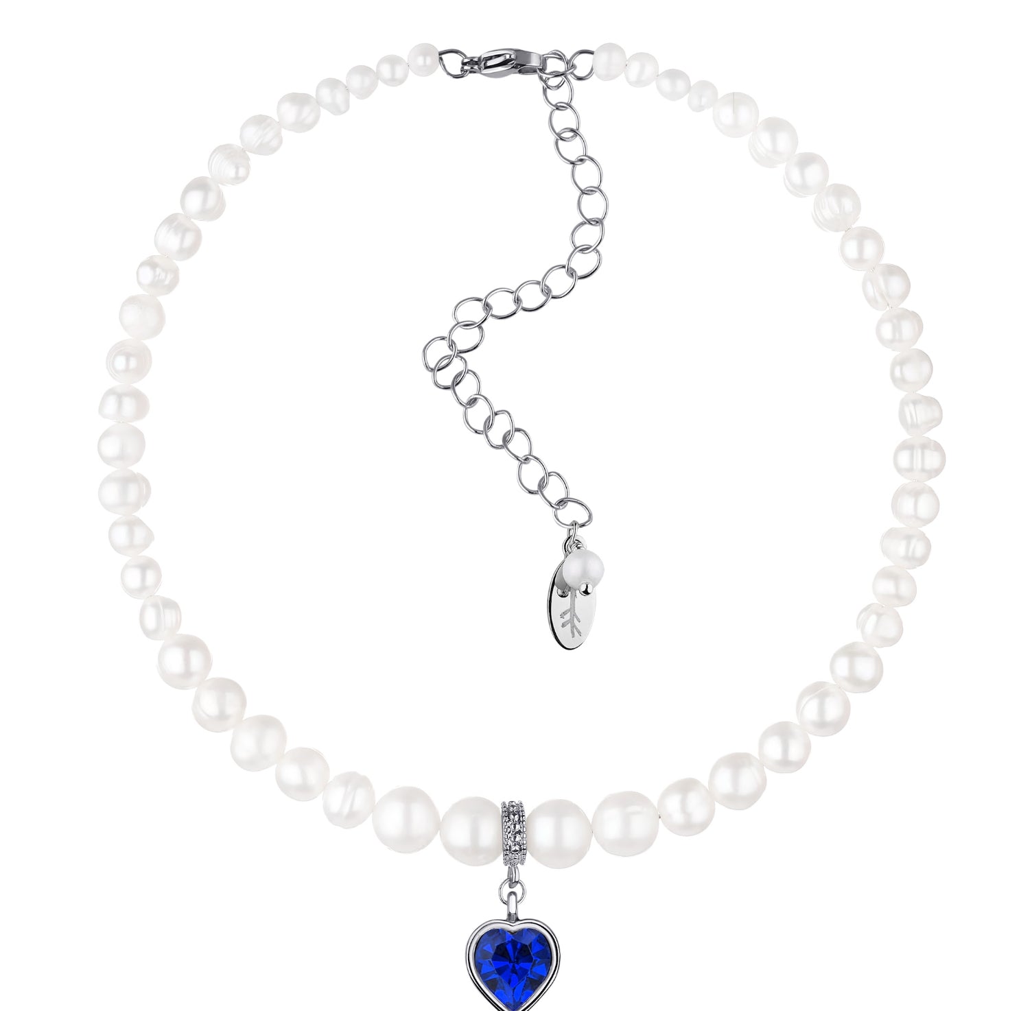 PEARLS CHOKER WITH NAVY BLUE HEART SILVER
