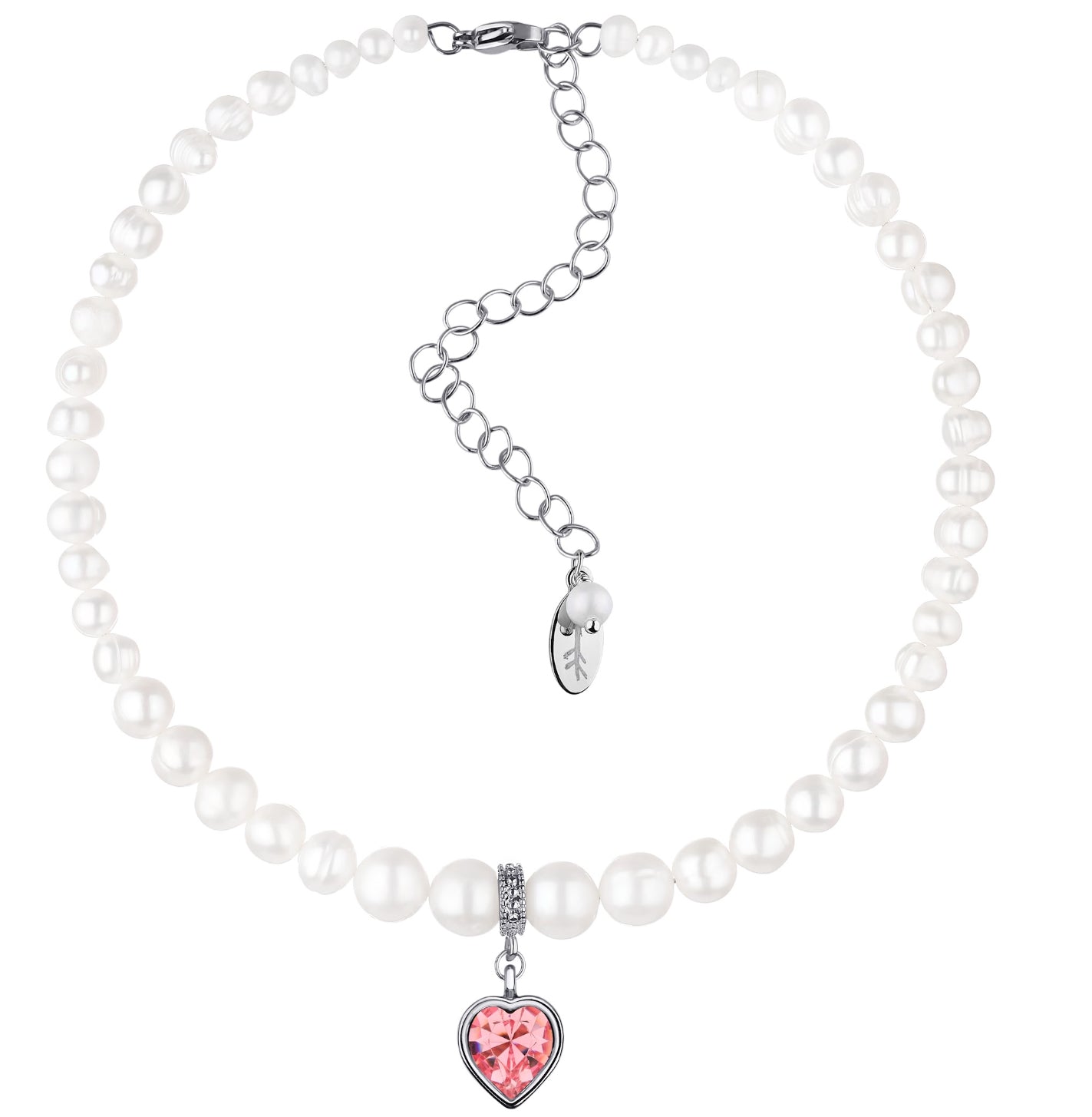 Natural pearl choker. Jewelry made of stainless steel. Rhodium-plated brass pendant with crystal. Nickel-free. Length: 33 cm + 10 cm extension chain.