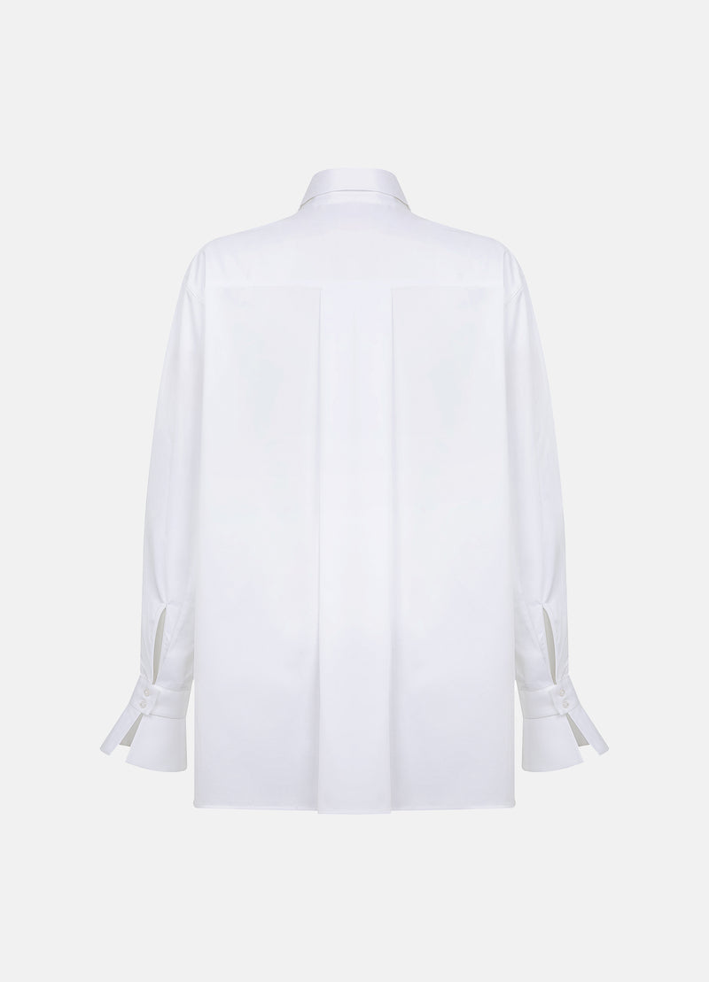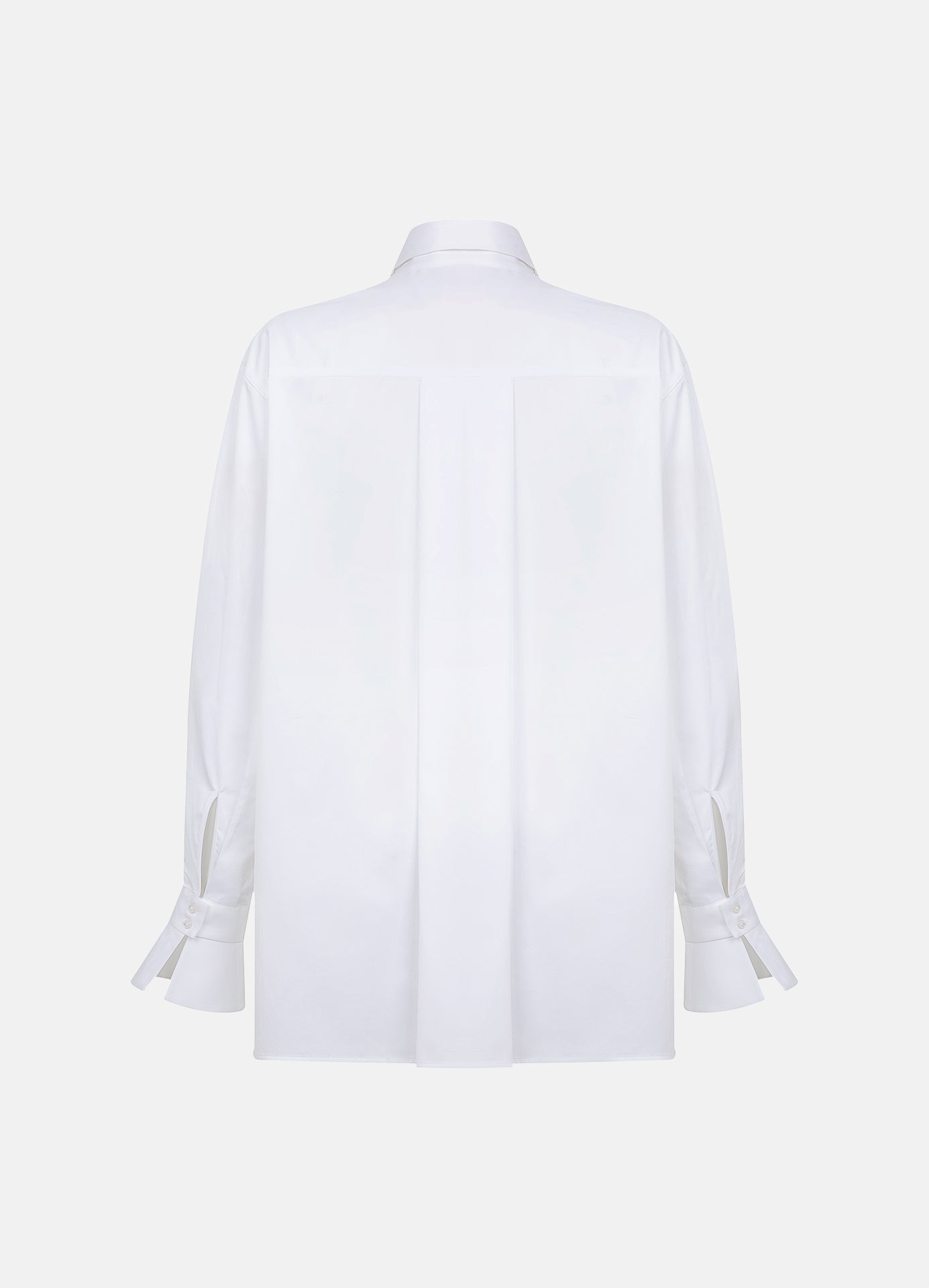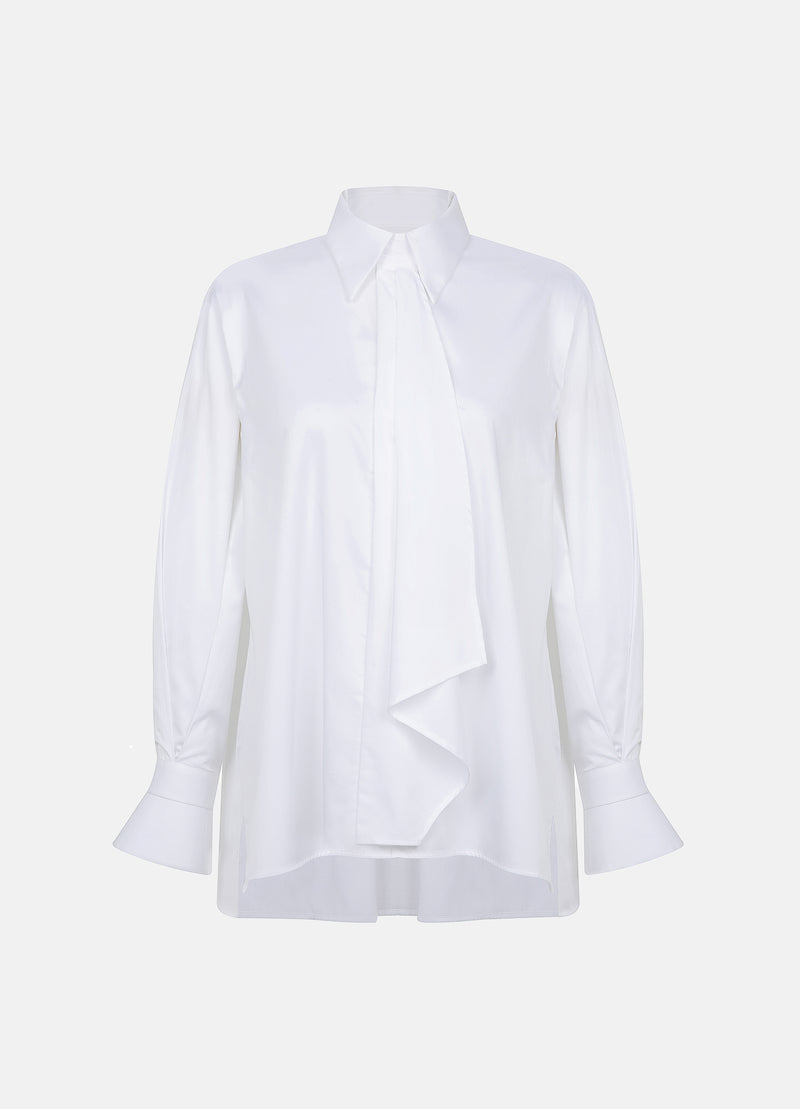 The elegant gem of our collection is the Quita white shirt. It features an airy flounce draping in the front, reminiscent of a descending wave. Highlighted by exquisite details such as bell-shaped cuffs and a classic collar, this shirt will make youк outfit stand out while providing the comfort of luxurious organic cotton satin fabric.