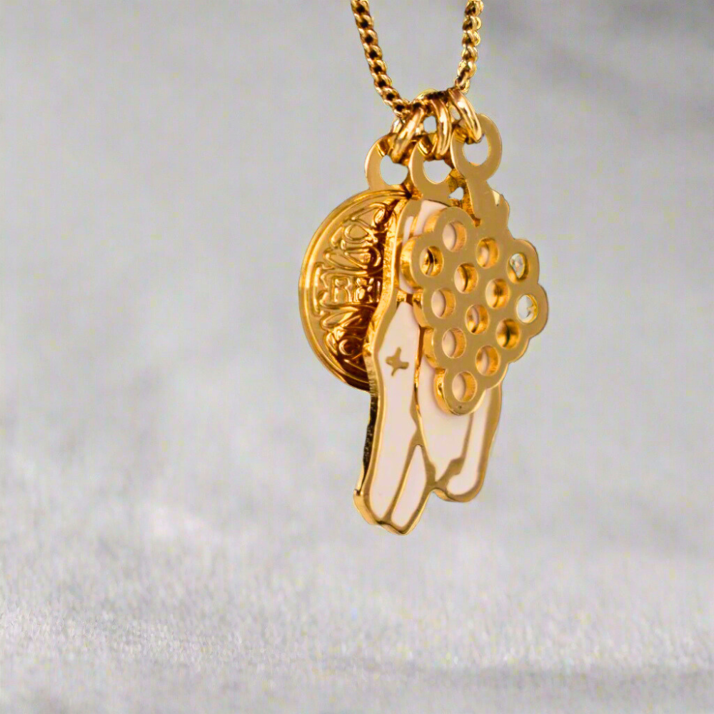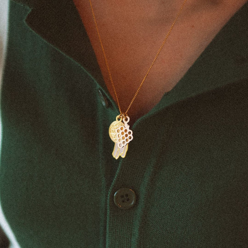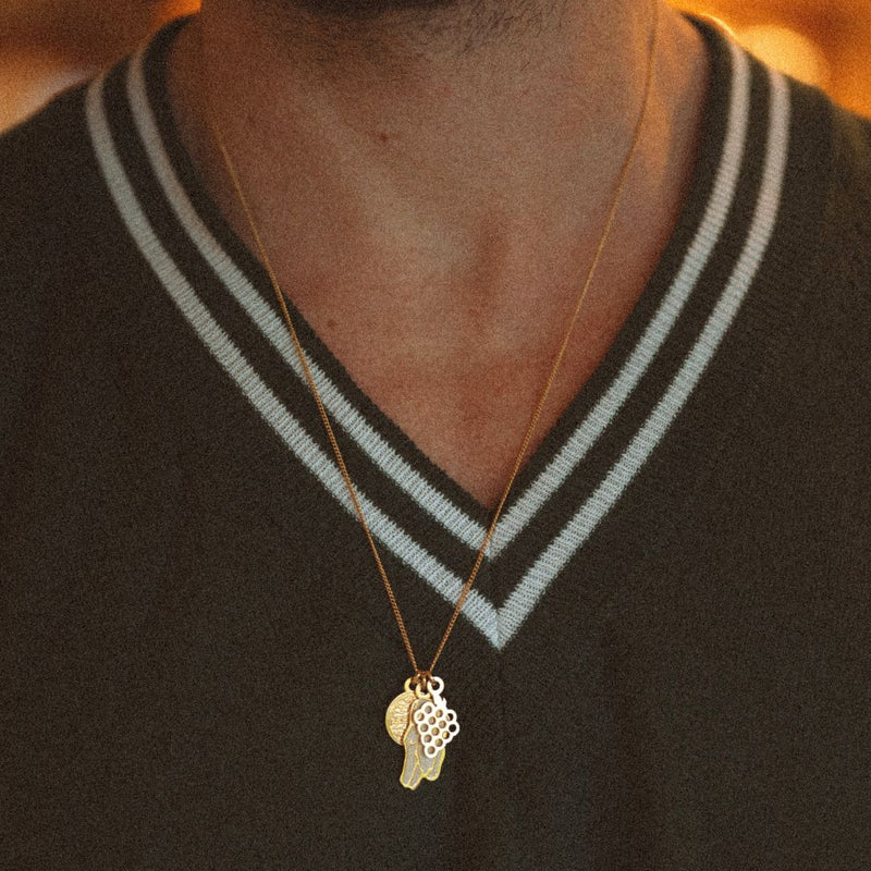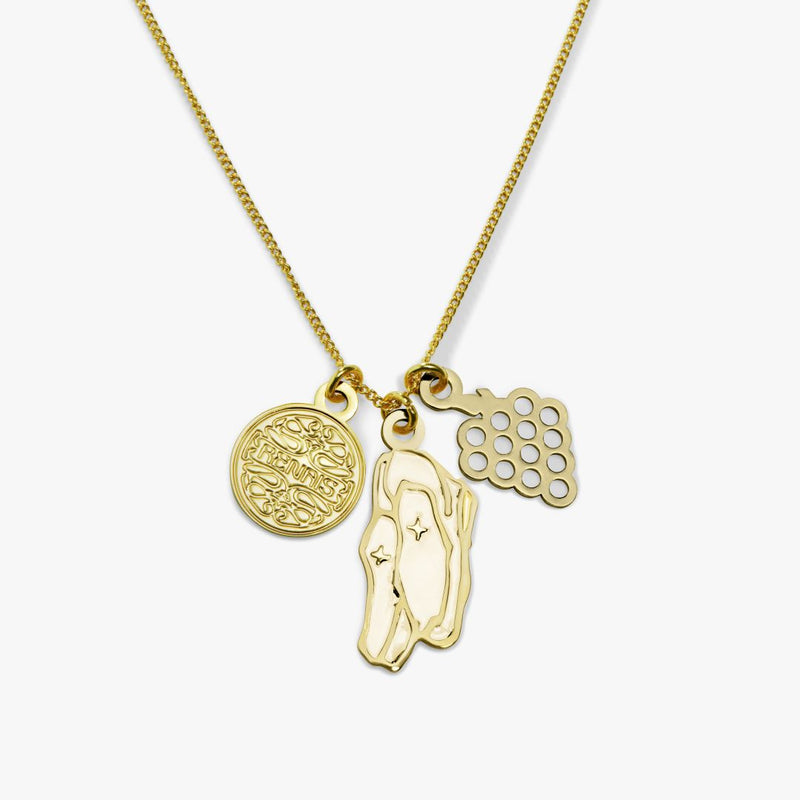 The Three-Charm Necklace is the latest from the Renais x Del Toro collaboration. This piece features three charms that pay tribute to our respective brands with the iconic gold Renais grape emblem paired with the Renais bottle cap alongside our gold Del Toro Milano loafer. Chain is 60cm in length. Designed for both Men & Women.