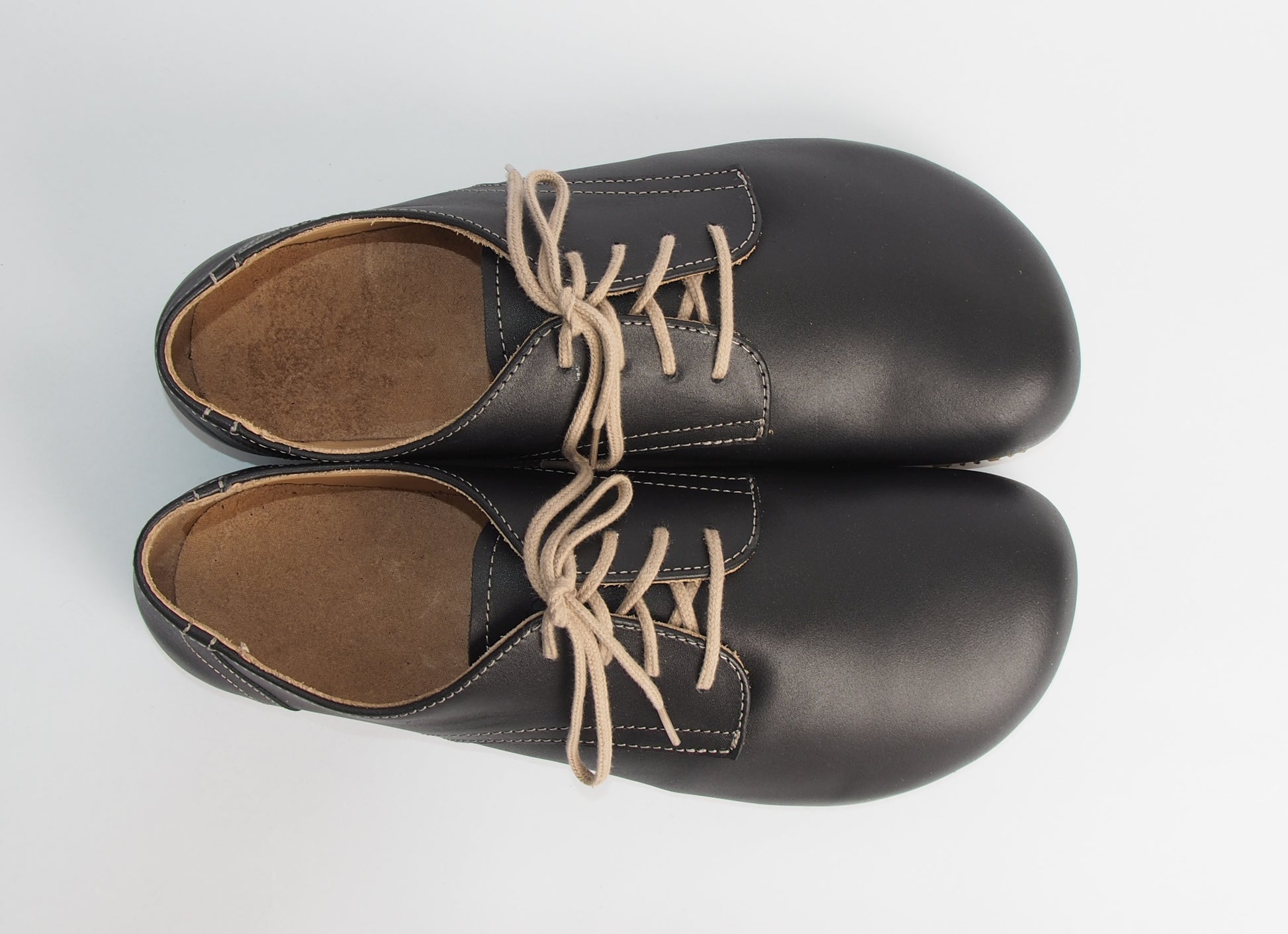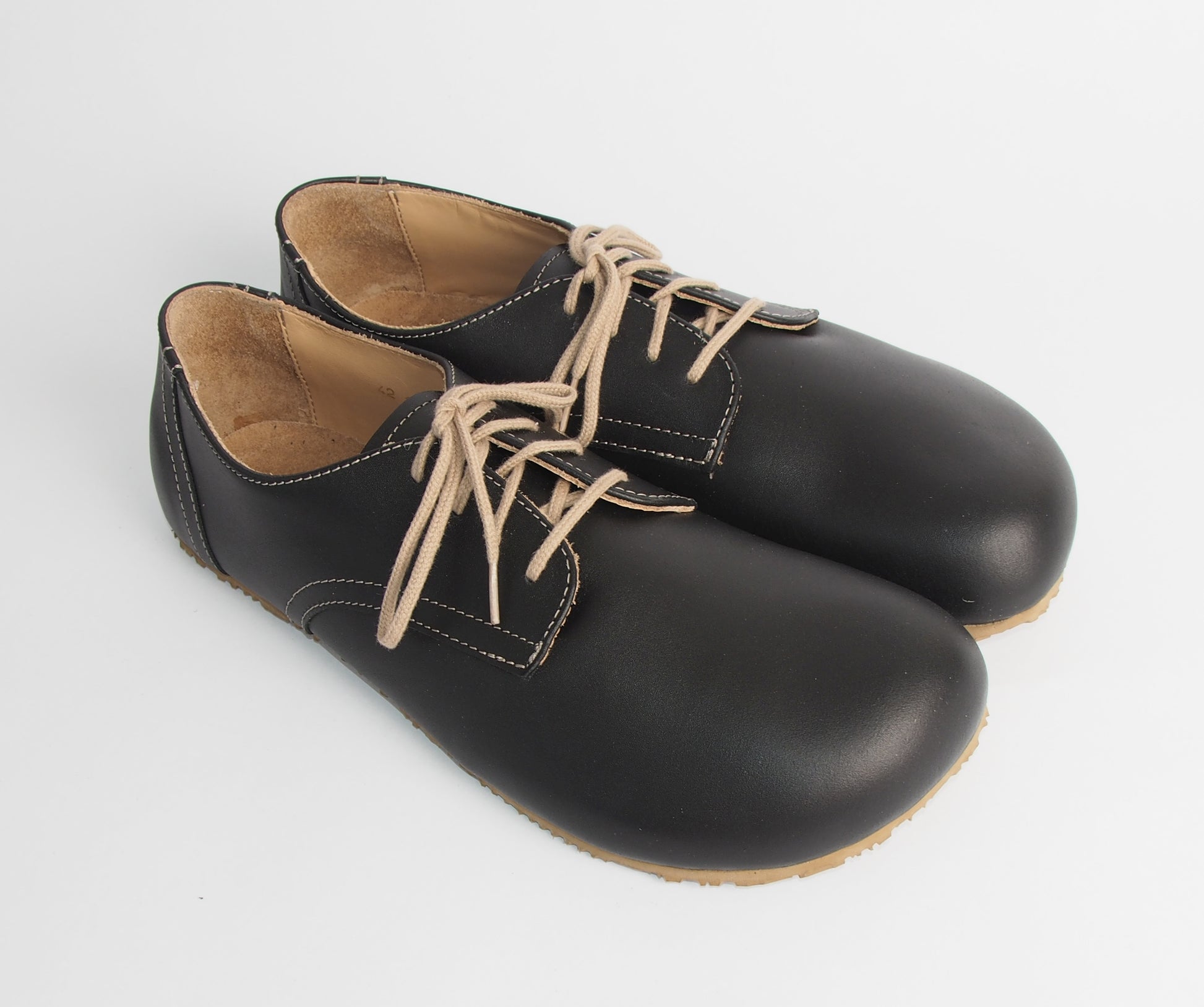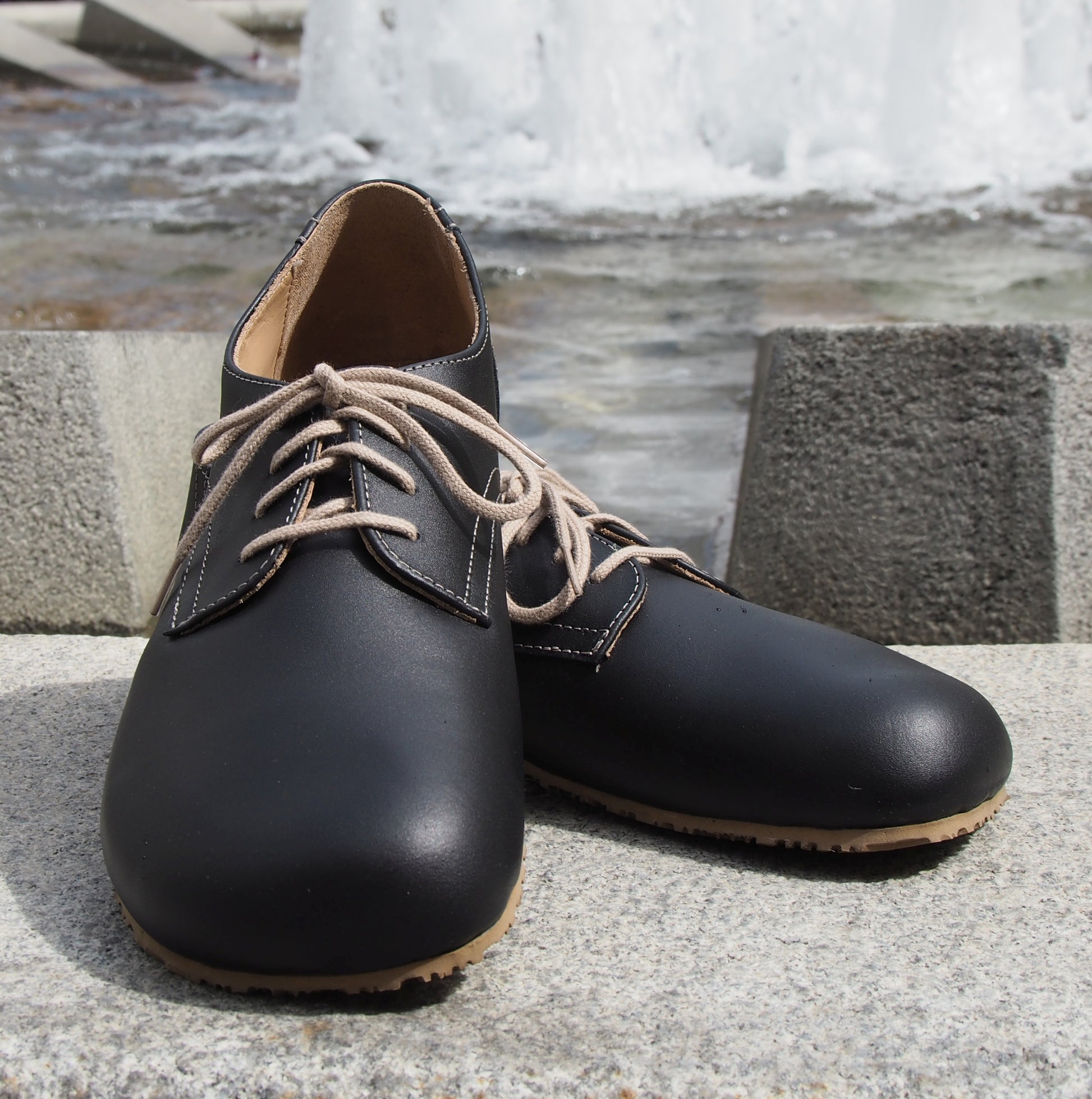 Crafted from natural smooth black leather with a hydrophobic treatment. Fully leather-lined for comfort. Features hidden eyelets and locally made custom cotton laces. Built on No(N)s' original last with a wide toe box and narrow heel for a natural fit. Set on a 1.6 mm leather pinsole and a 5 mm Vibram Arrows sole that leaves no streaks. Fully repairable and re-soleable for extended wear. All materials are sourced from sustainable tanneries and producers.