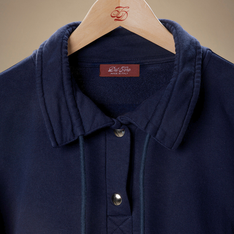 Inspired by the ruggedly handsome yachtsman aesthetic, the Sailor Sweatshirt is a nod to vintage functional design. Featuring snap cuffs for an easy roll and a snap placket for breathability, the garment is intended to secure easily with enough give to tear away quickly in any sporting situation. The collar strings offer additional functionality for protection against the elements - there are too many ropes, cleats, and hardware on a yacht to risk a hood getting caught.