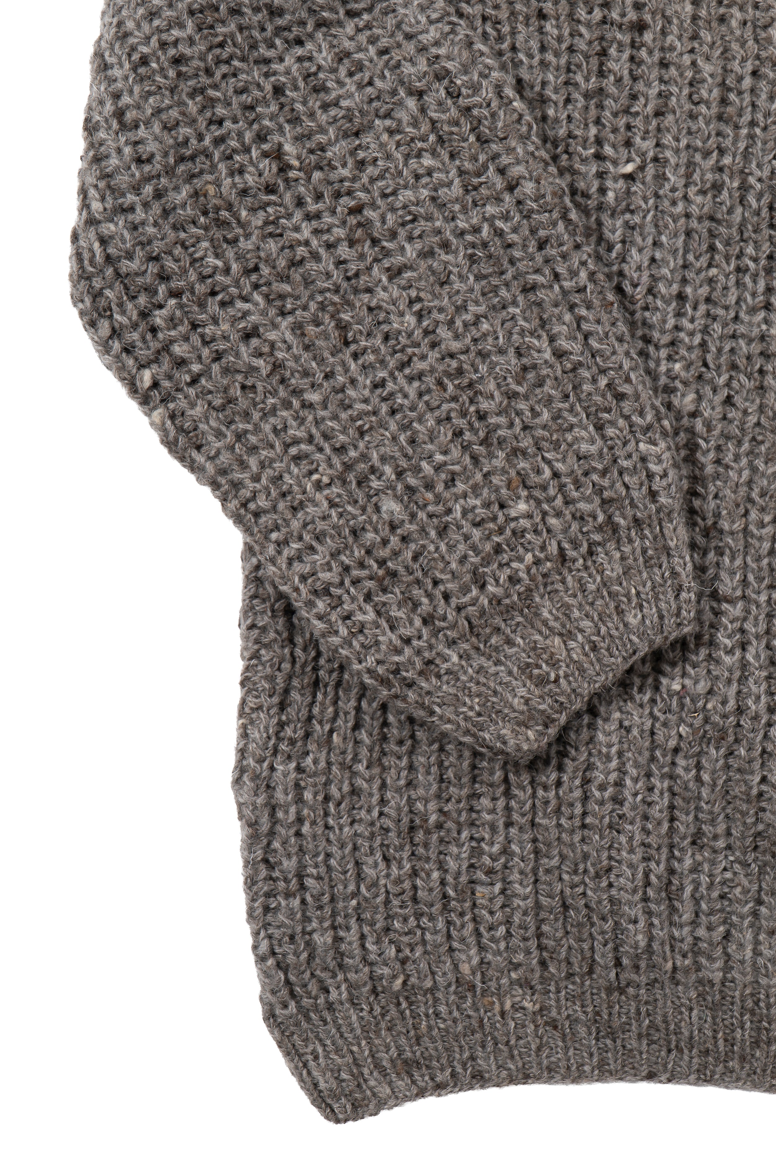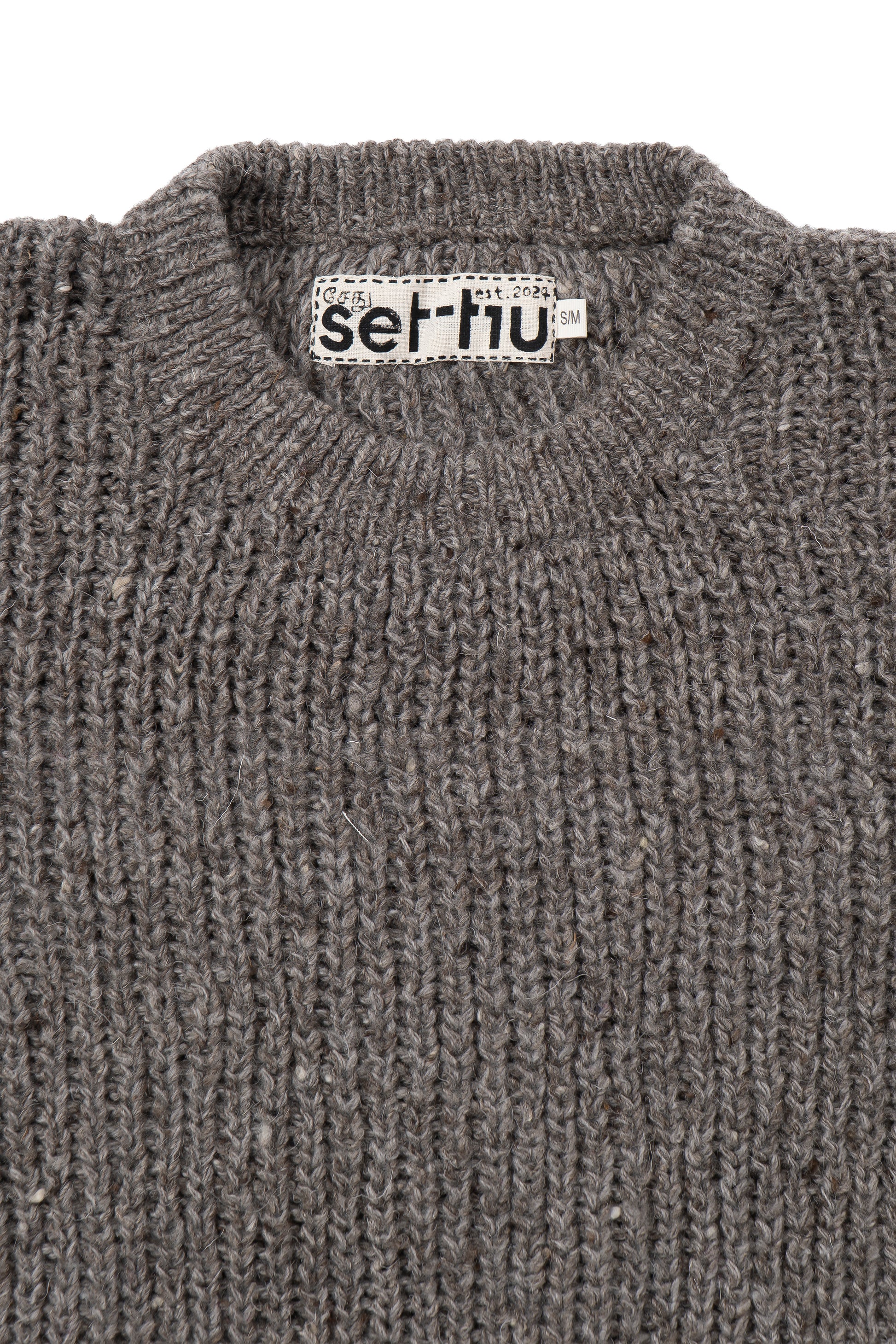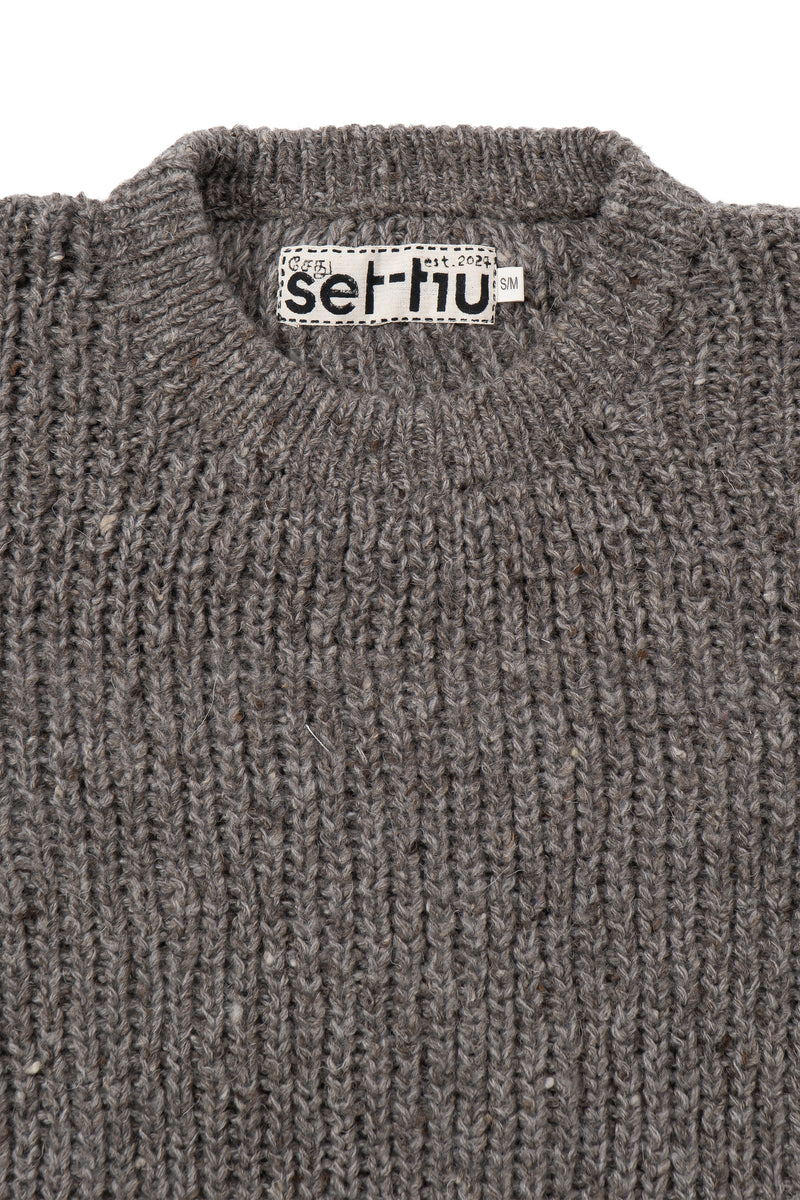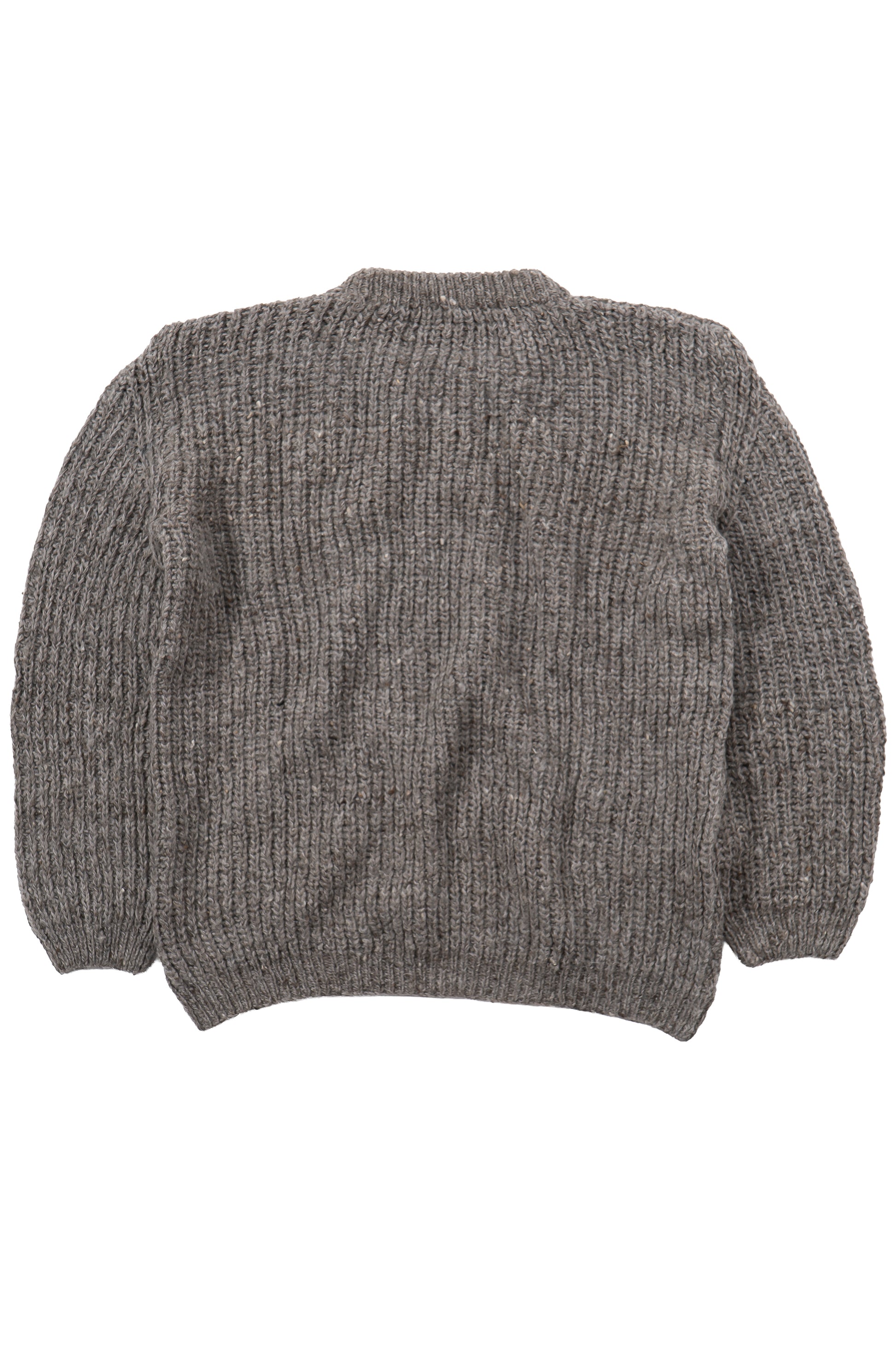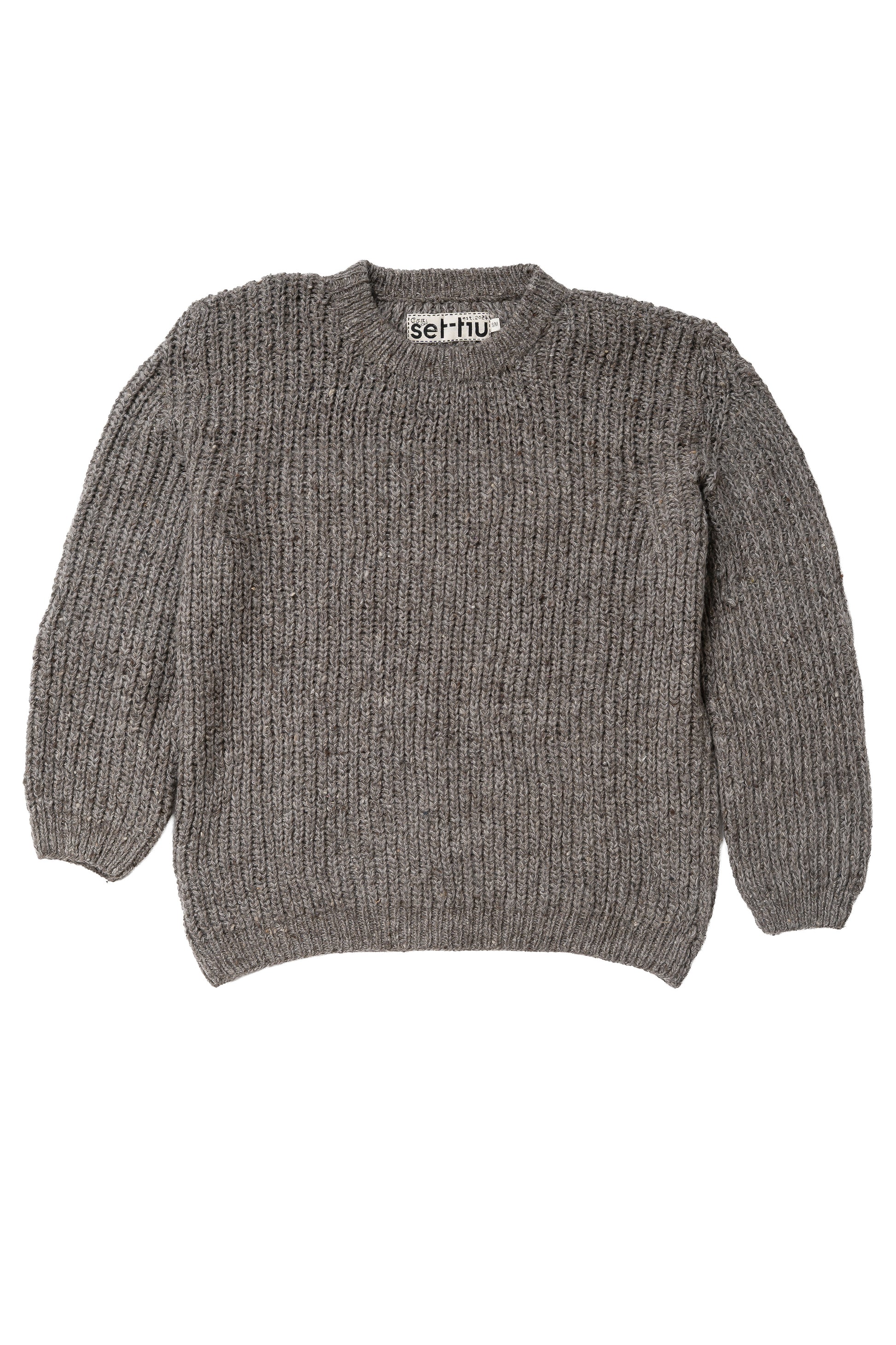 Handknit in Kullu, Himachal Pradesh, this sweater combines soft undyed Merino wool with indigenous sheep wool, creating a subtle melange effect. Lightweight yet warm, the piece showcases artisanal texture and natural fiber character.