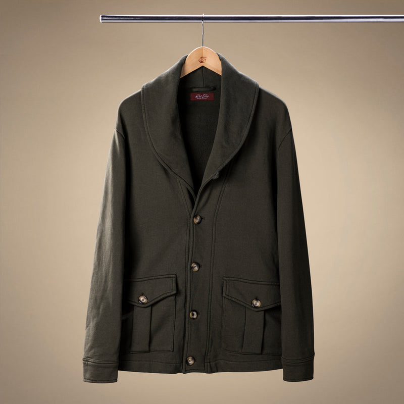Shawl Collar Sweatshirt Cardigan - Military Green