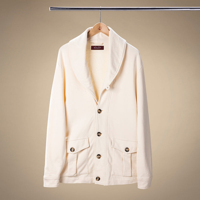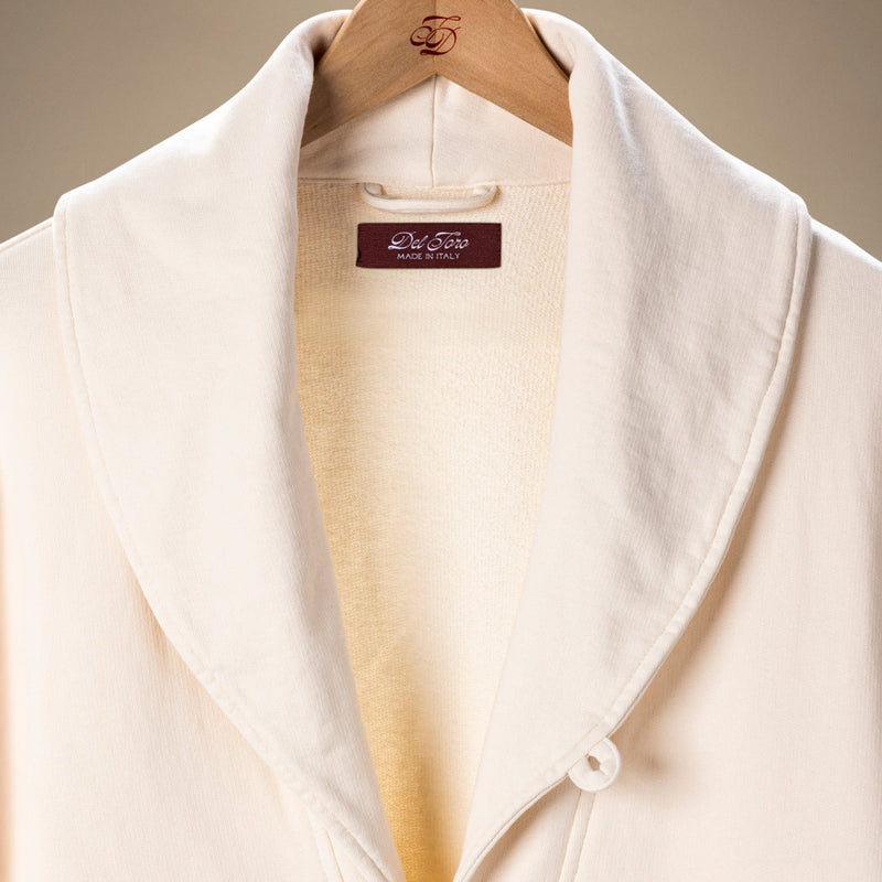 Shawl Collar Sweatshirt Cardigan - Panna White