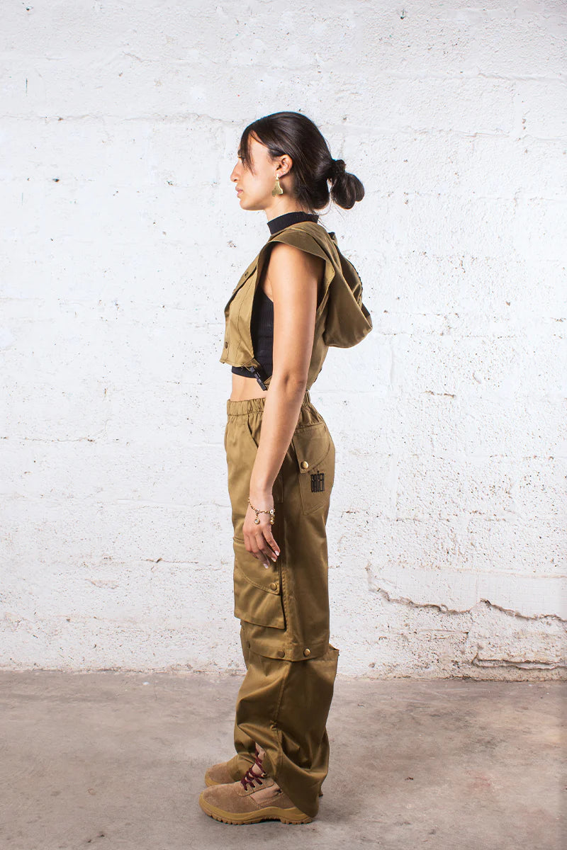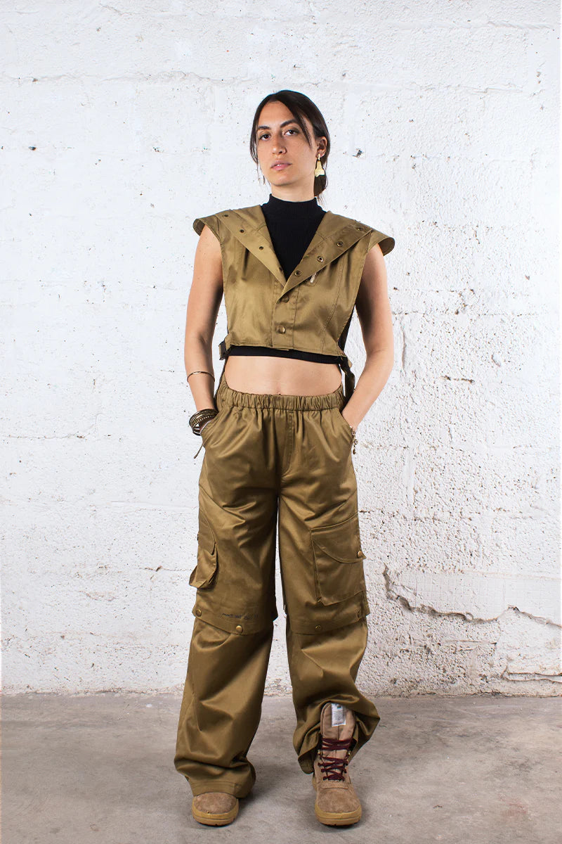MADE FROM UP-CYCLED GABARDINE FABRIC. THIS UP-CYCLED, UNISEX, MODULAR STREETWEAR COLLECTION IS A TRIBUTE TO THE SOUL AS A SYMBOL OF THE SELF. MADE OUT OF LEFTOVER FABRIC, IT REPRESENTS THE INNER DIALOGUE OF A MAN AS HE/SHE STRUGGLES WITH THE HARDSHIPS OF LIFE.