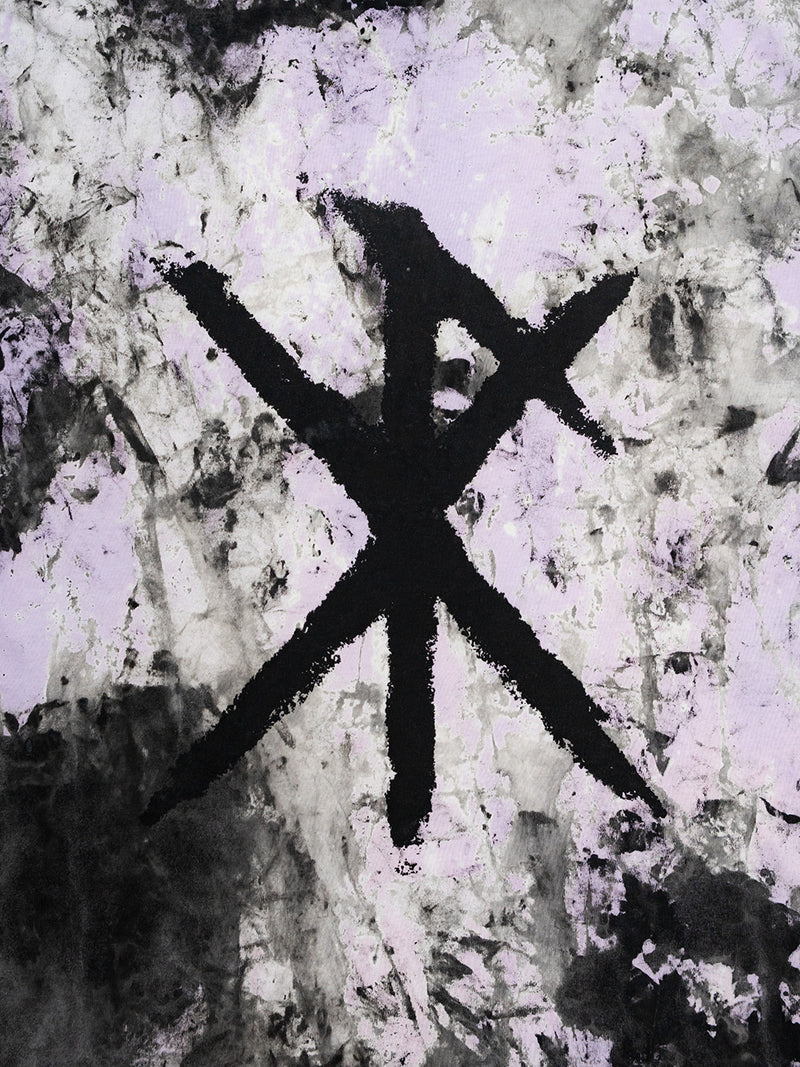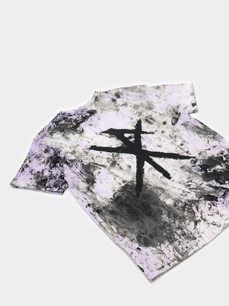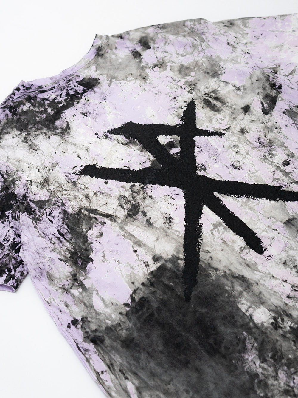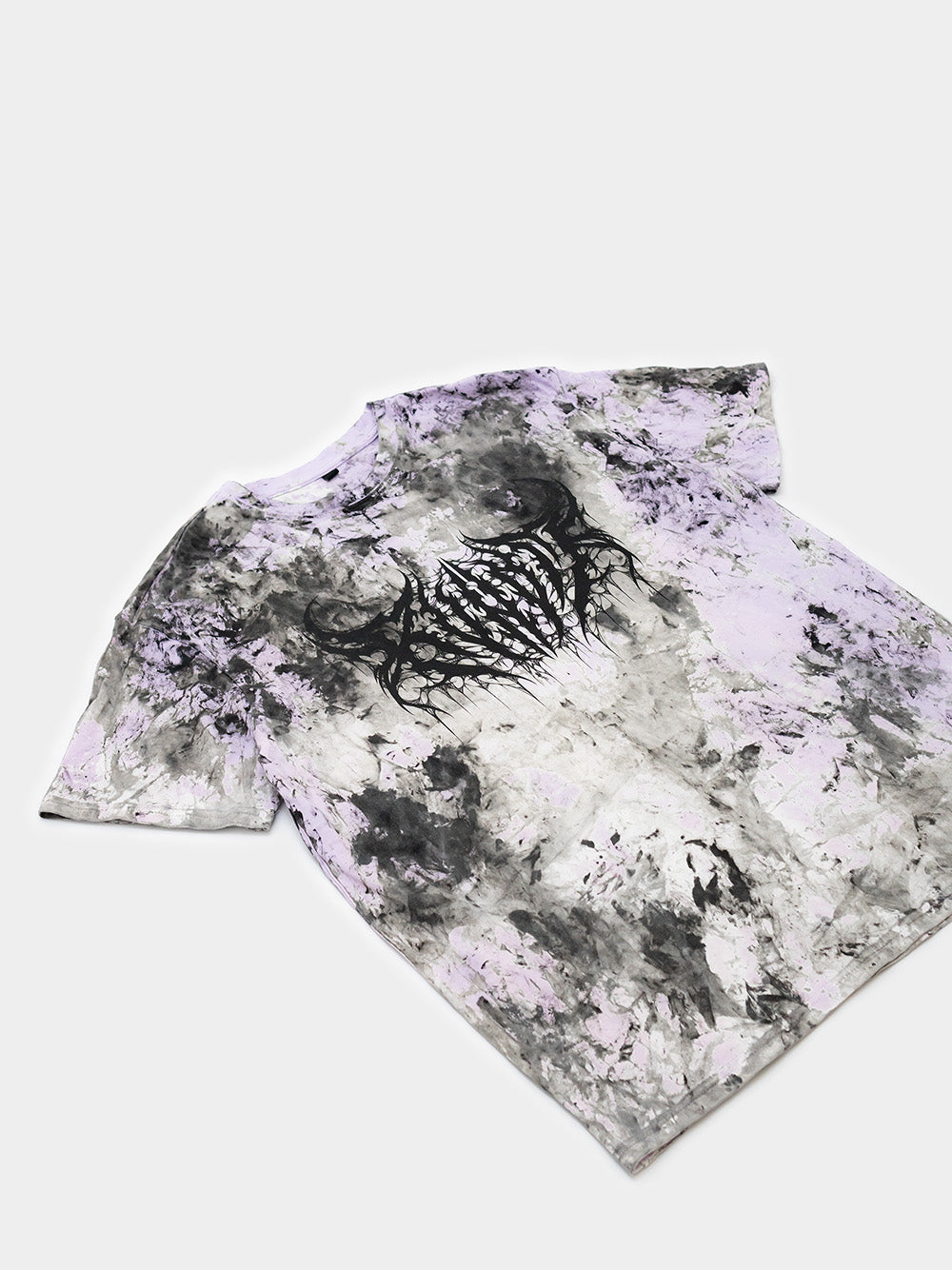 Bleached and dyed T-Shirt with a black screenprint on the front and back. Made as part of the åSeptinityÁ Collection.