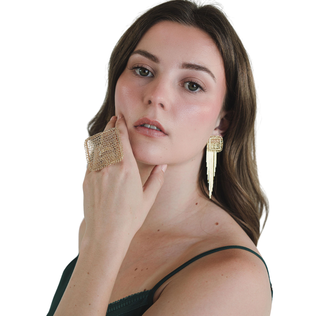 Handmade crochet jewelry in 18K gold-plated metal wire.
