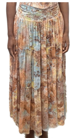 We're so excited to introduce our first skirt to the collection. This fluid, tiered maxi skirt showcases the rich Forio print in layers of fluidity. Designed with adaptability in mind, the poly-lycra waistband makes this possible to wear as a tube dress.