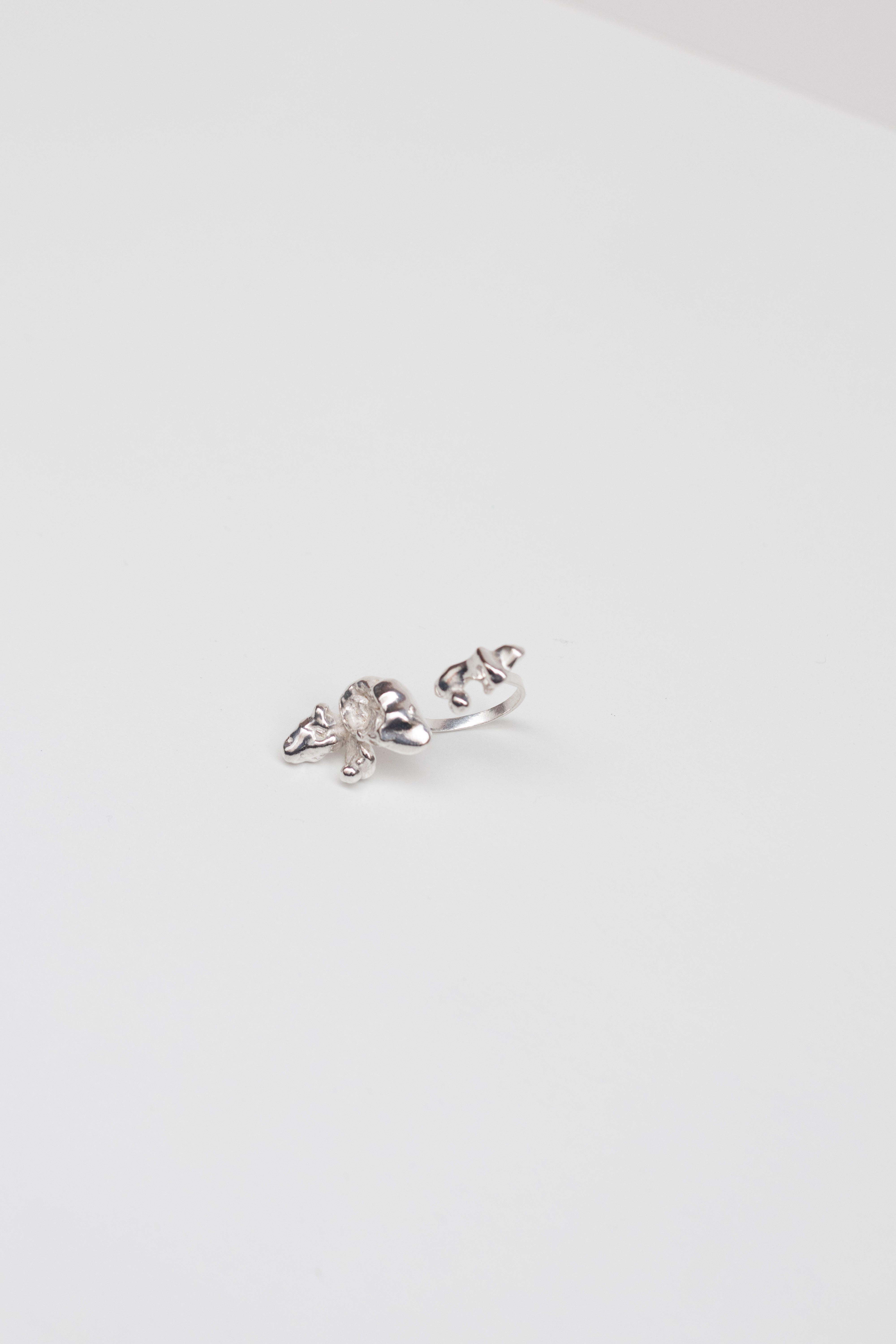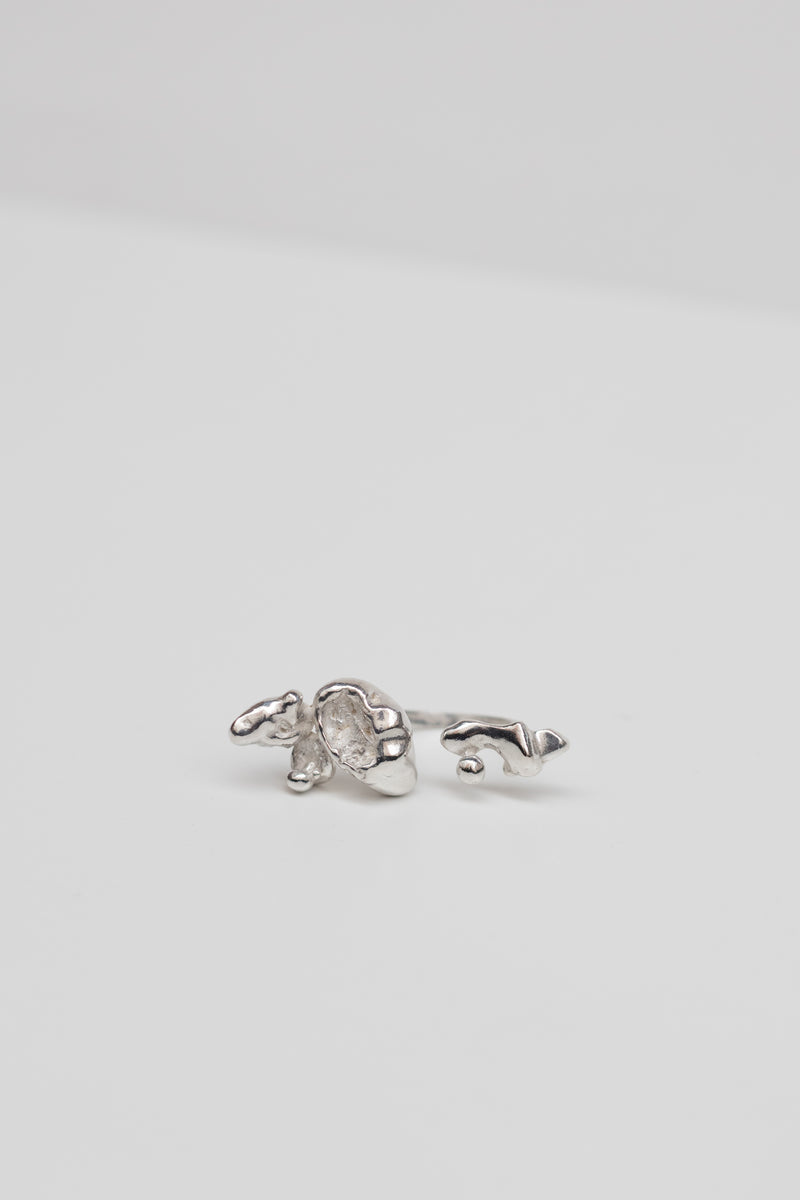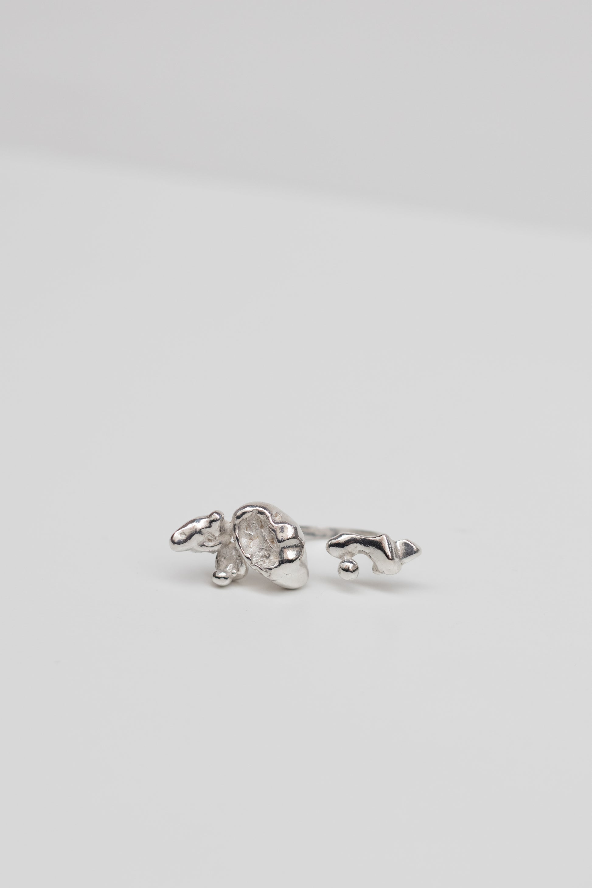 The adjustable size of the ring ensures a comfortable and secure fit for any wearer, while the unique shape creates the illusion of two dollops of silver floating effortlessly on the hand. The intricate details of the ring capture the essence of the natural beauty of the glacier, making it the perfect accessory for anyone who loves to make a statement.
