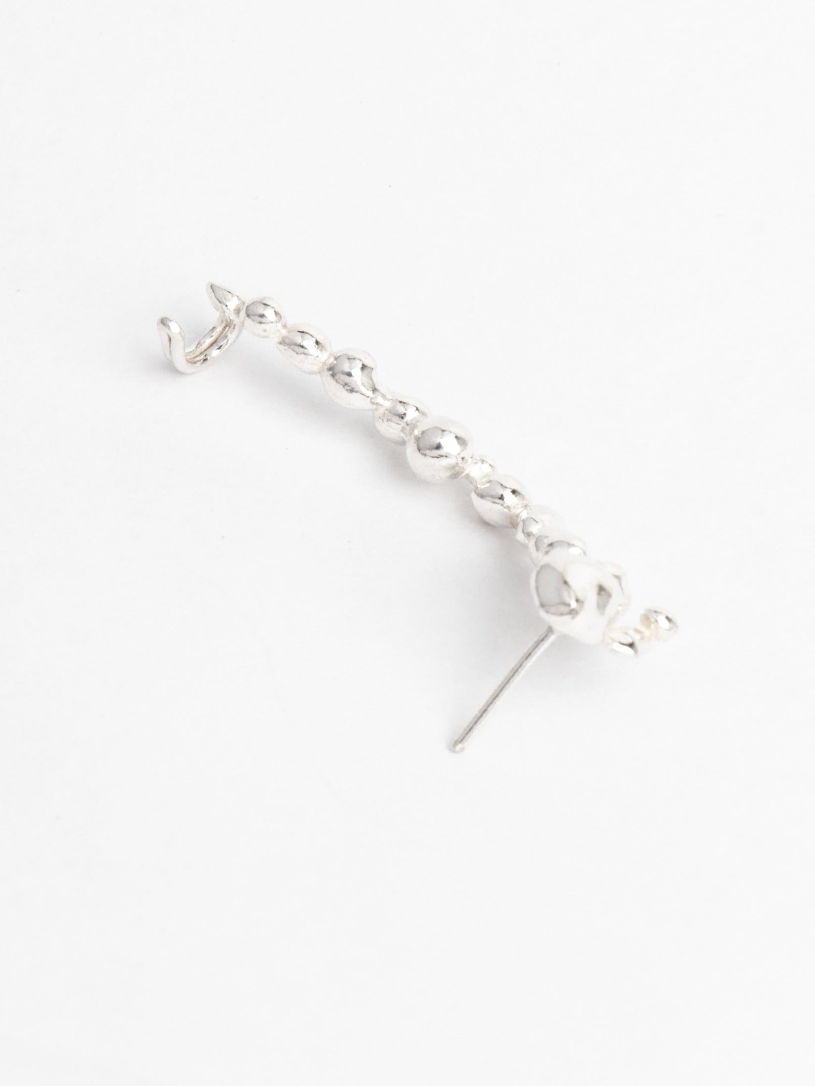 It adjusts to the ear with a classic earring stud on the bottom and a hoop-like pin on the top part.