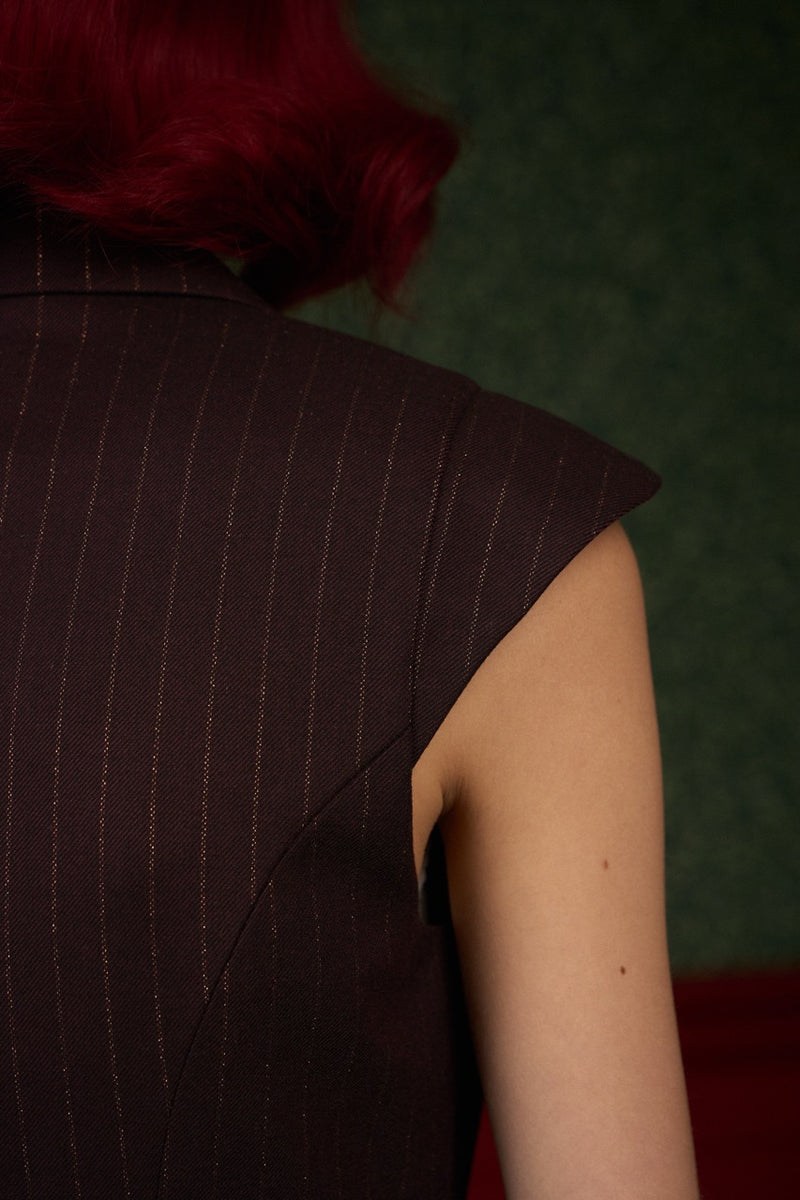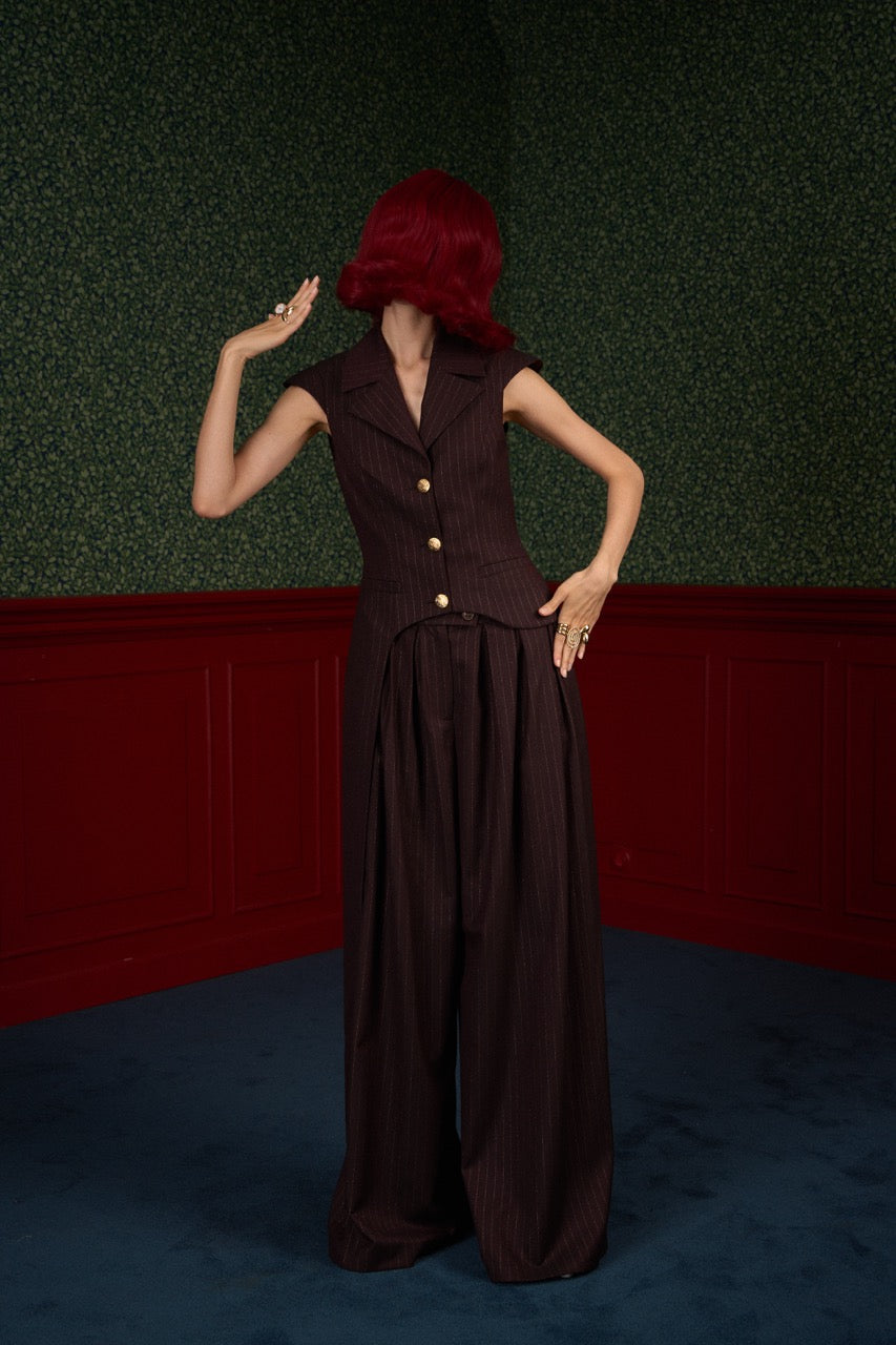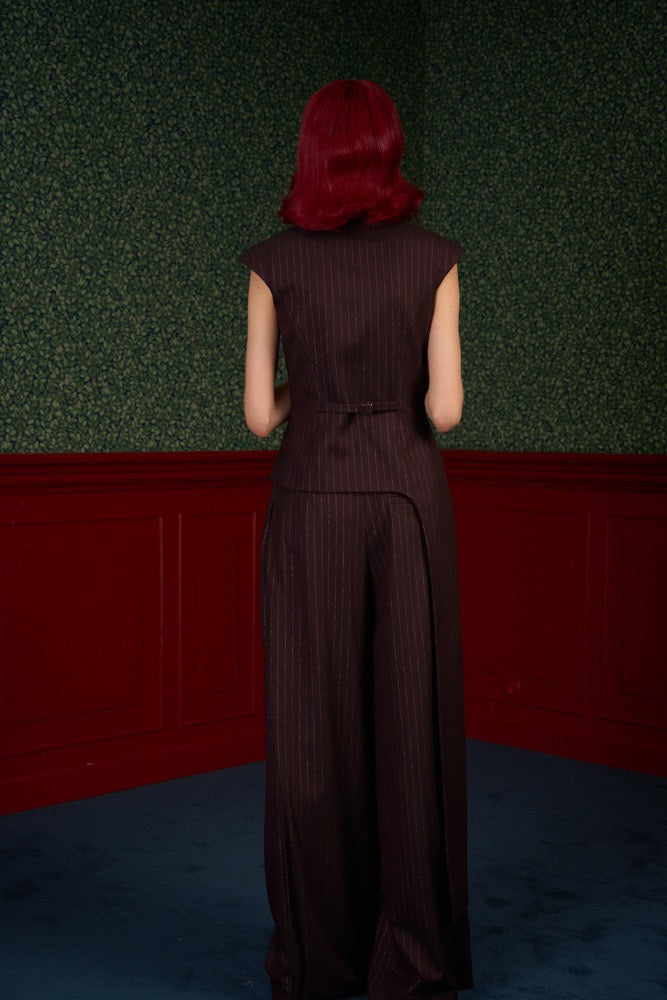 Brown Pinstripe Asymmetric Tailored Vest - Iconic