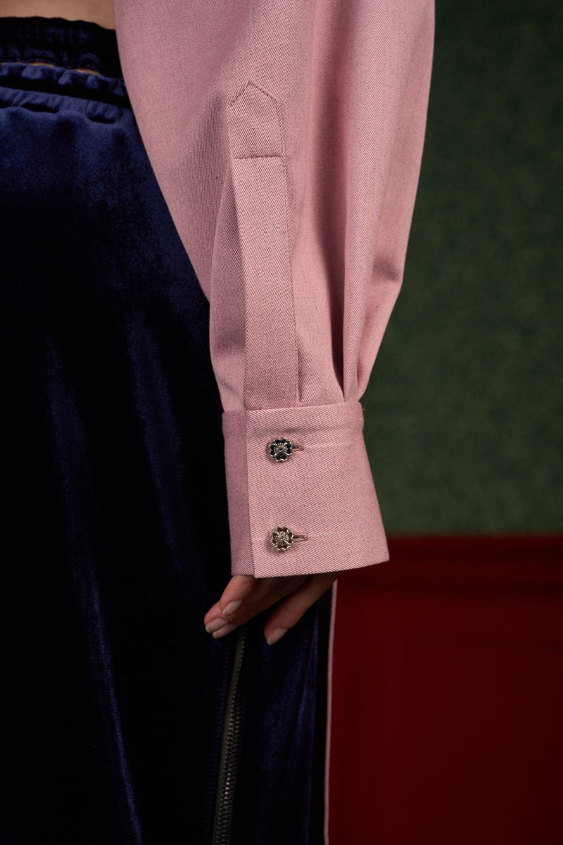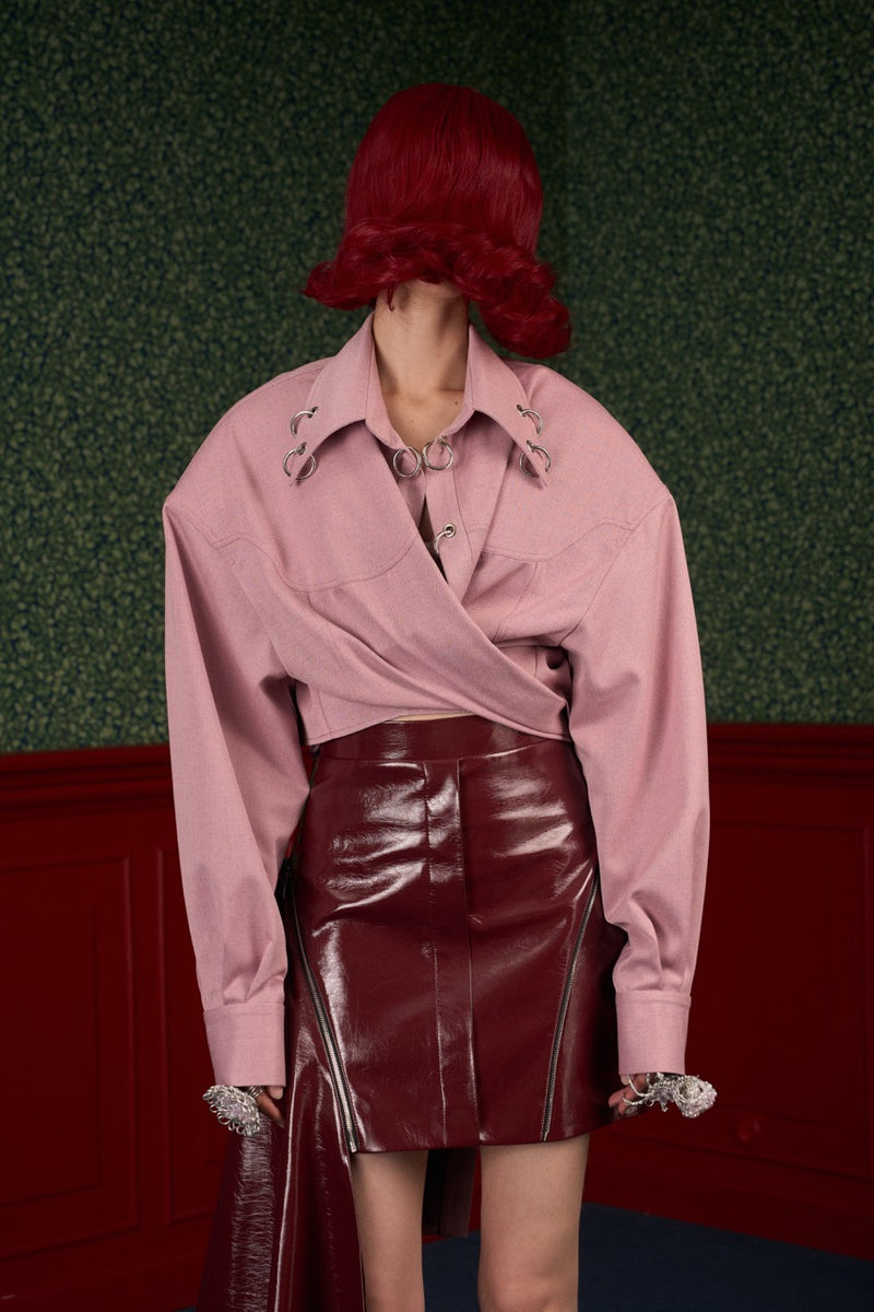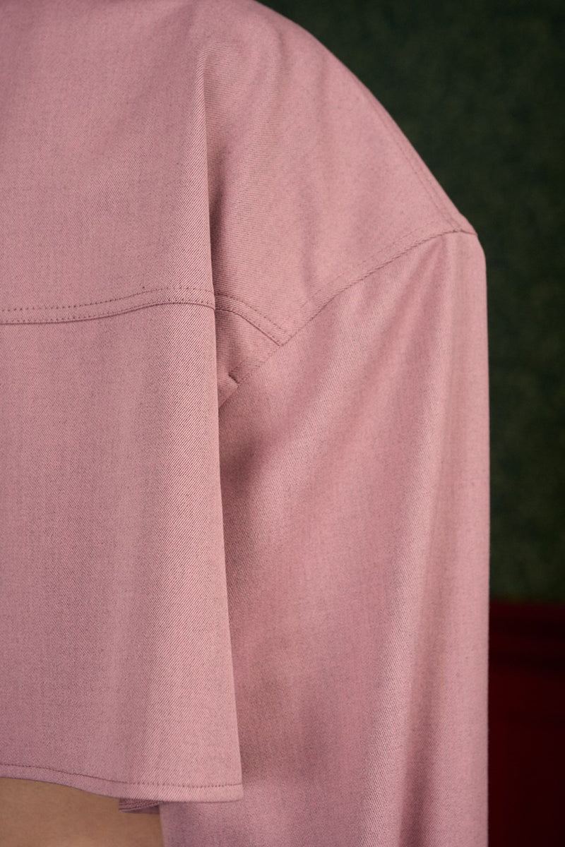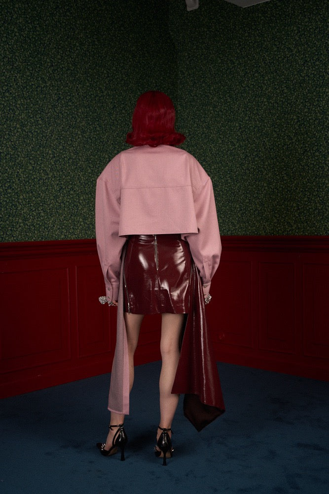 The Strong-Shoulder Oversized Shirt "The Doll" is a piece that gives you space to play. This shirt is your new statement staple, empowering you to transition effortlessly between soft minimalism and dramatic edge. It features a multi-functional design that allows it to be worn as a cropped shirt, tied at the waist, or as a flowing outer layer with long hanging ties.