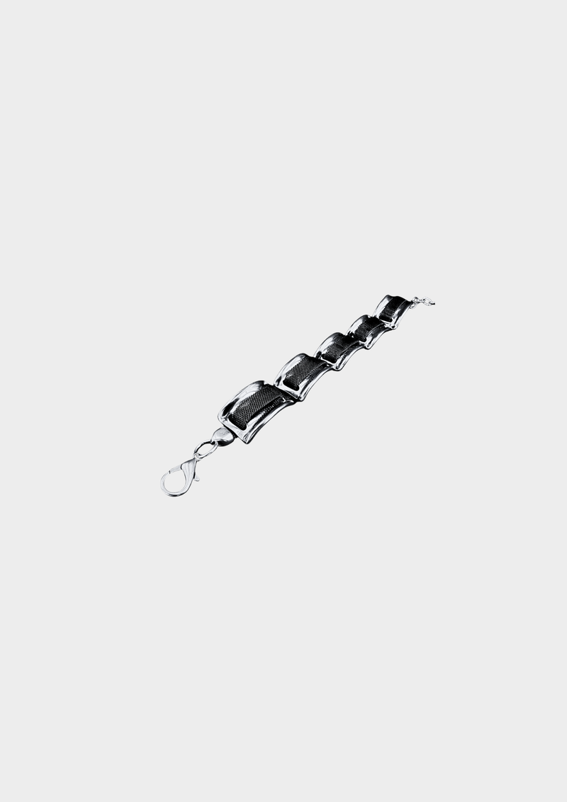 Blade Rift is sharpness sculpted. Silver-plated parallelogram links lock over a strip of flat metal mesh, creating a bracelet that looks like it’s been carved straight from steel. Clean, angular, and dangerous in its simplicity - this is not a piece you wear quietly.