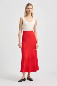 The Pointelle Knit Skirt has been knitted in a pointelle rib stitch and features a mid length, straight cut with an elasticated waistband. Crafted in a light weight, Cool-Touch Merino-Cotton blend yarn.