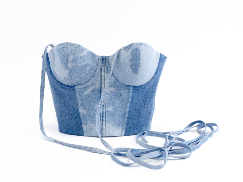 Celebrate your uniqueness with a look that’s anything but ordinary. From denim scraps to wearable art, this corset top tells a story of style and sustainability.