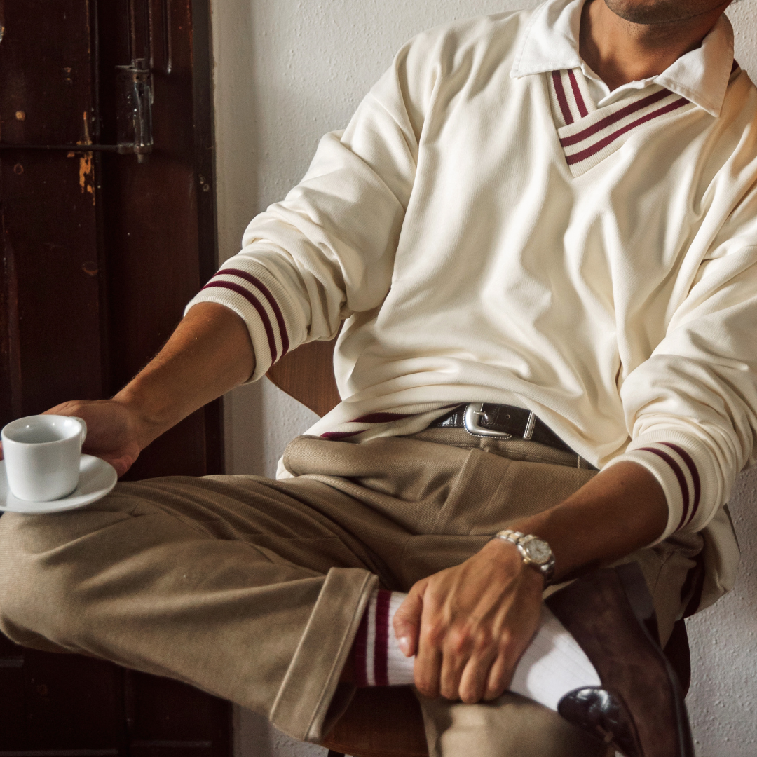 Vintage Club V-Neck Sweatshirt - Panna / Burgundy Trim