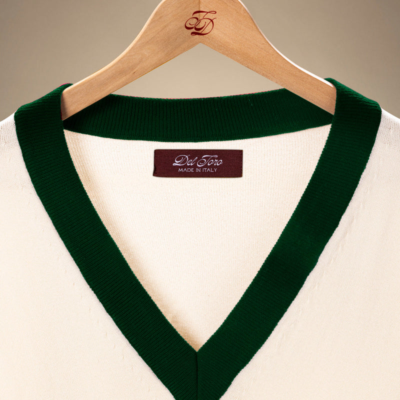 Men's Vintage V-Neck Sweater - Vintage White / Forest Green