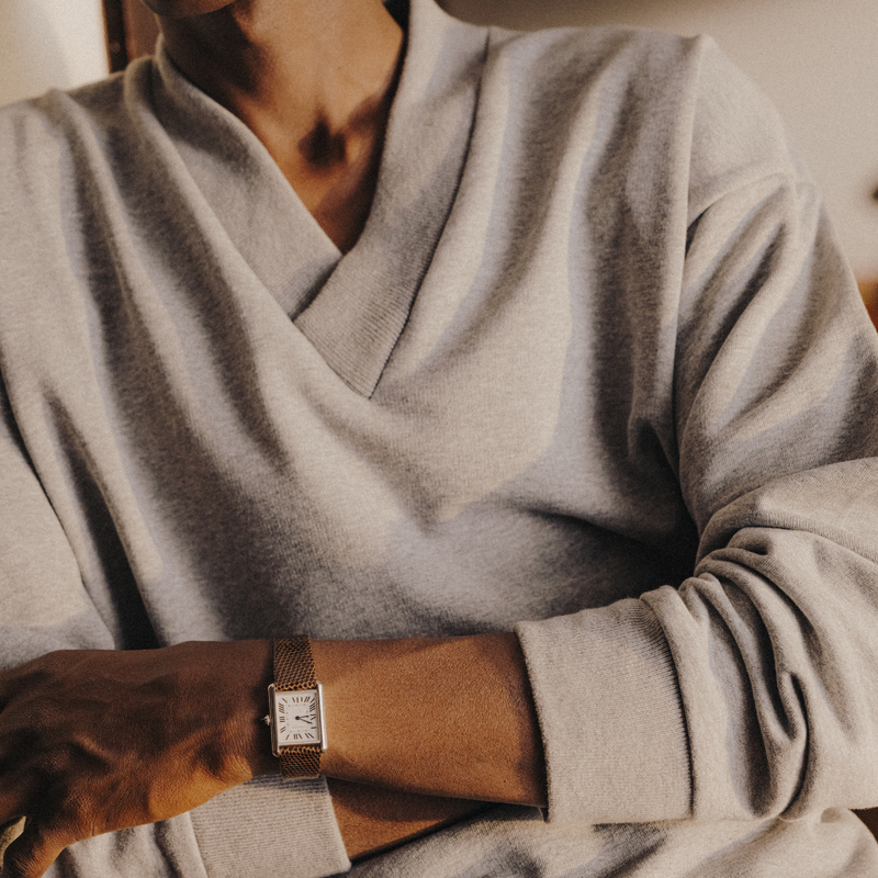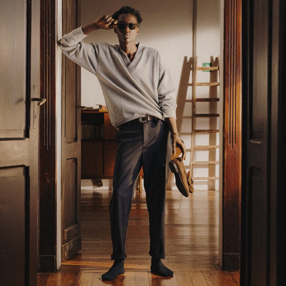 A nod to our best-selling lightweight Vintage V-Neck Sweater, we gave this piece a heavier update in sweatshirt form. The body is made from 100% jersey cotton, giving it that cozy sweatshirt feel. The neck and cuff trim features the same knit as the original, blending sweater and sweatshirt into one cohesive piece. It’s timeless, versatile, and incredibly comfortable. Wear it by itself or as an extra layer – either way its vintage fit and aesthetic will give you that sprezzatura you’ve been looking for.