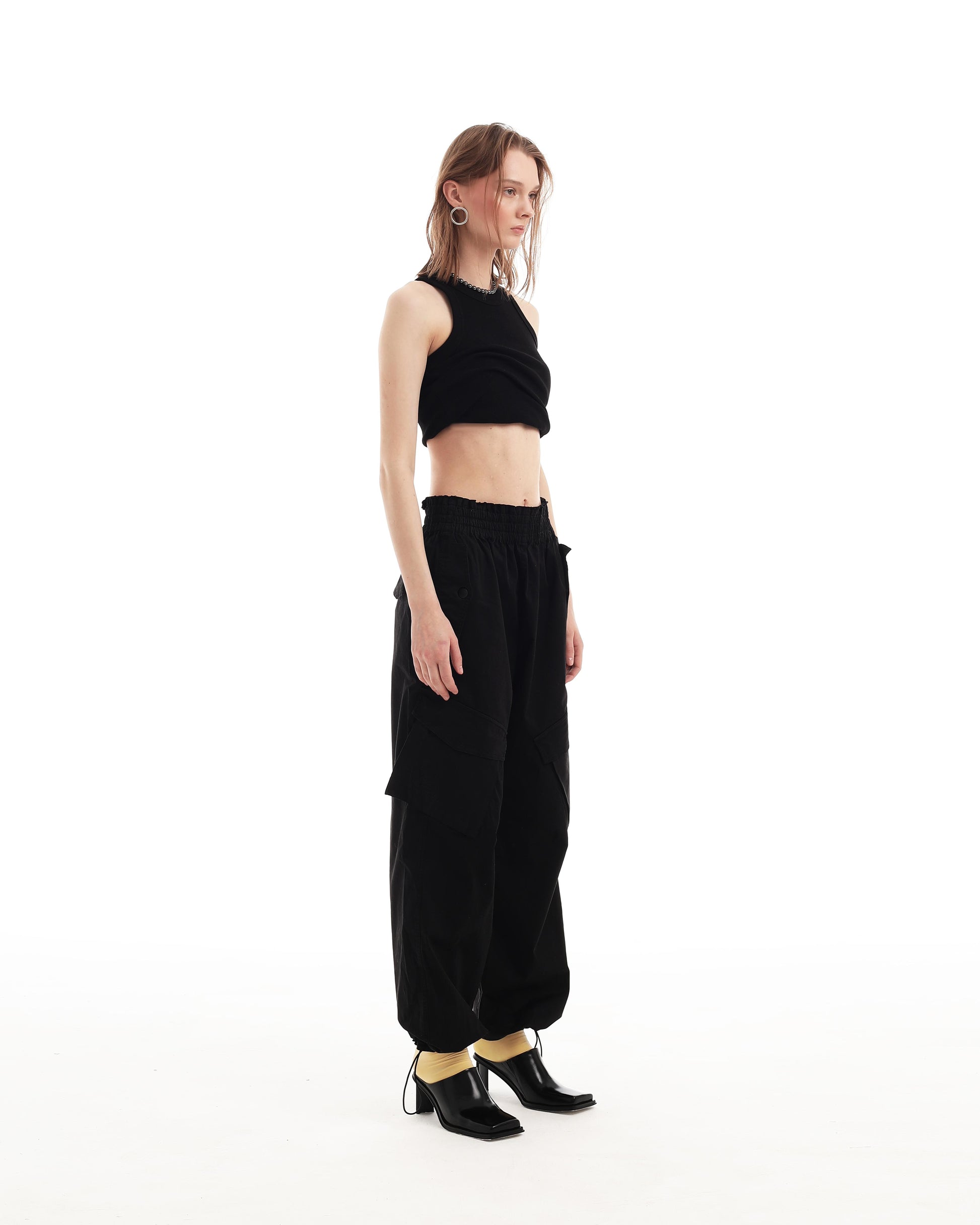Made from cotton, these oversized mid-rise cargo pants feature numerous pockets and drawcord cuffs. Wide ecru cargo pants designed to for casual every day wear as well as to dress up at night.These utilitarian unisex pants pack a stylish punch.