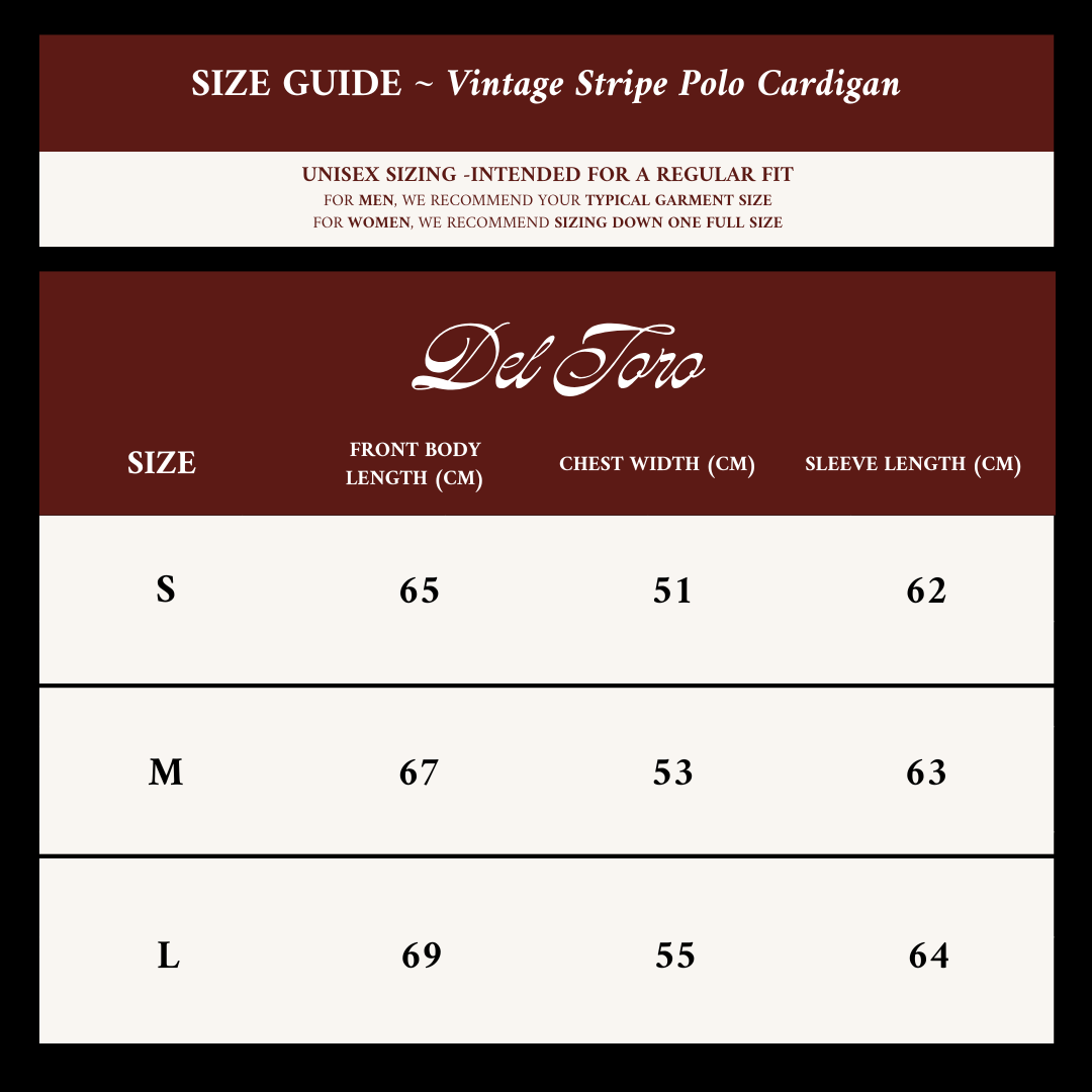 Inspired by vintage Italian style, the Vintage Stripe Polo Cardigan is a display in timelessly elegant design. Representing a combination of multiple Italian aesthetics, the garment is uniquely versatile and can be worn in any season. Crafted for a regular fit, the style features a 7-button front placket, two small side pockets, and inter-woven front stripes that are a true nod to heritage Italian style. Designed for both Men & Women.
